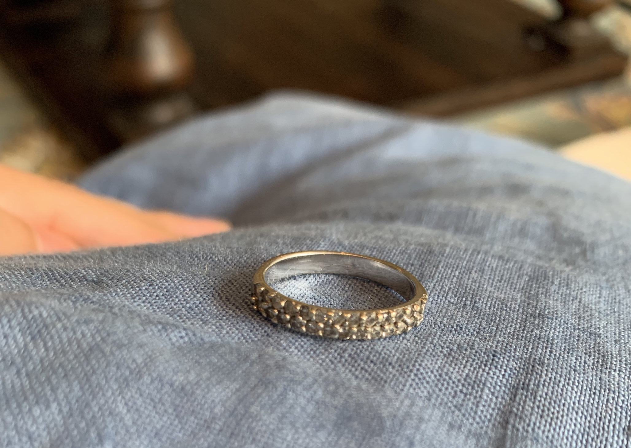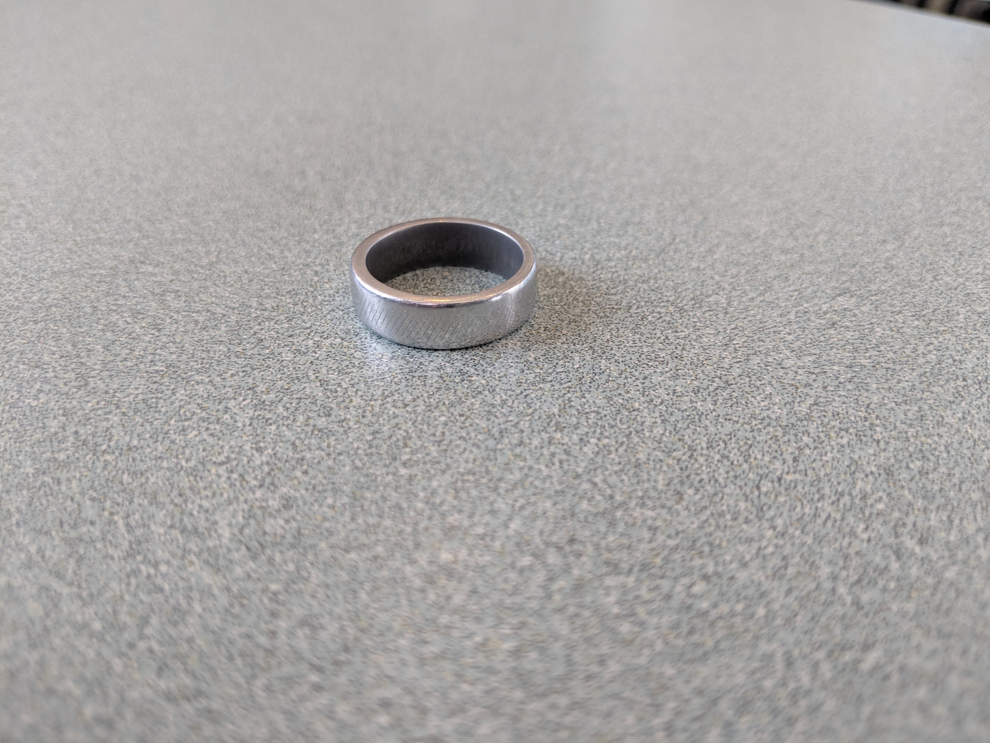@silly_goose speaking of rings DH made this one when we first started dating. Worn nearly every day since. It used to have a knurl texture on it but I've worn it away. Made of aluminum on a laithe. He plans making me a new one someday or make a whole tube or rod with this texture for me to use as a fidget item (I pick at the skin around my nails and my hope is just having a texture to feel will stop me from doing that)