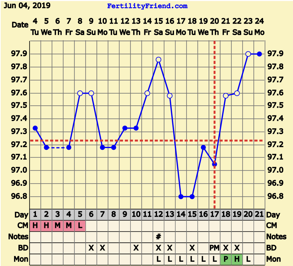 CS/Q: Temp dip this AM, but that tends to happen around day 6 or 7 (not usually this big though). I am not SS so that's cut down on the crazy.