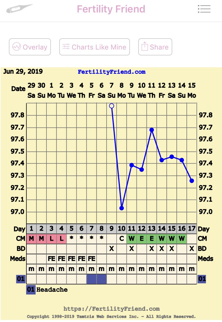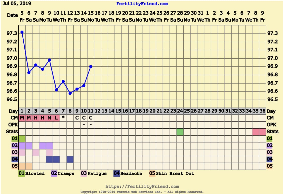 CS/Q: Nope. I usually have a significant dip right when O happens, but my OPKs are negative and no EWCM yet. I think I am going to be here for a while.