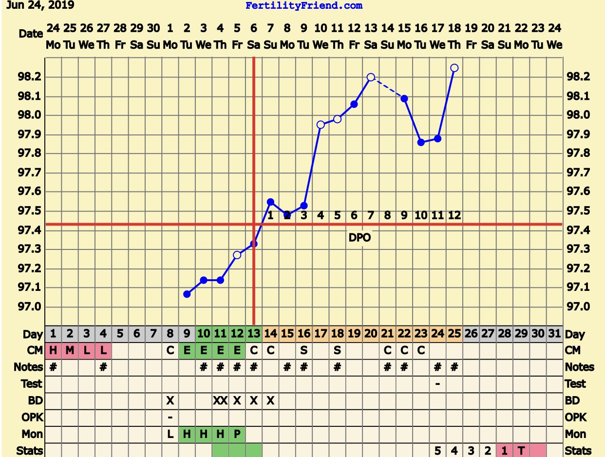 @ttcbabyodo I’m sorry about YH’s lack of interest. A more reliable predictor is a +OPK because a temp rise happens after O and basically just gives you a retrospective day for ovulation. I feel like FF could be right on O day because my basic understanding of BBT is that it rises after the egg is released, plus your CM changed from fertile to non. When did you do the OPK(s) on CD 12? You could’ve tested in the middle of your LH rise on CD 13- FX!