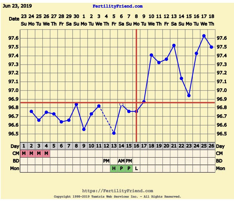 @sevenn FX those are good signs for you! Your lower temp was probably just because you weren't temping at your normal time. I know when I do the online BBT adjuster, if I temp late, it always adjusts the temp to be lower (I literally have no idea if that made any sense)