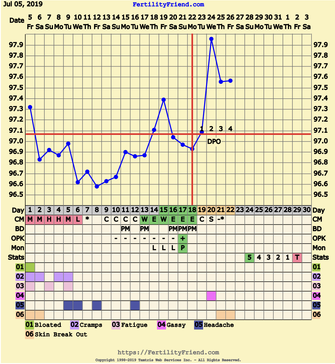 CS/Q: Lovely temp rise, but some of it is probably due to the progesterone. I just hope I didn't start it too early.