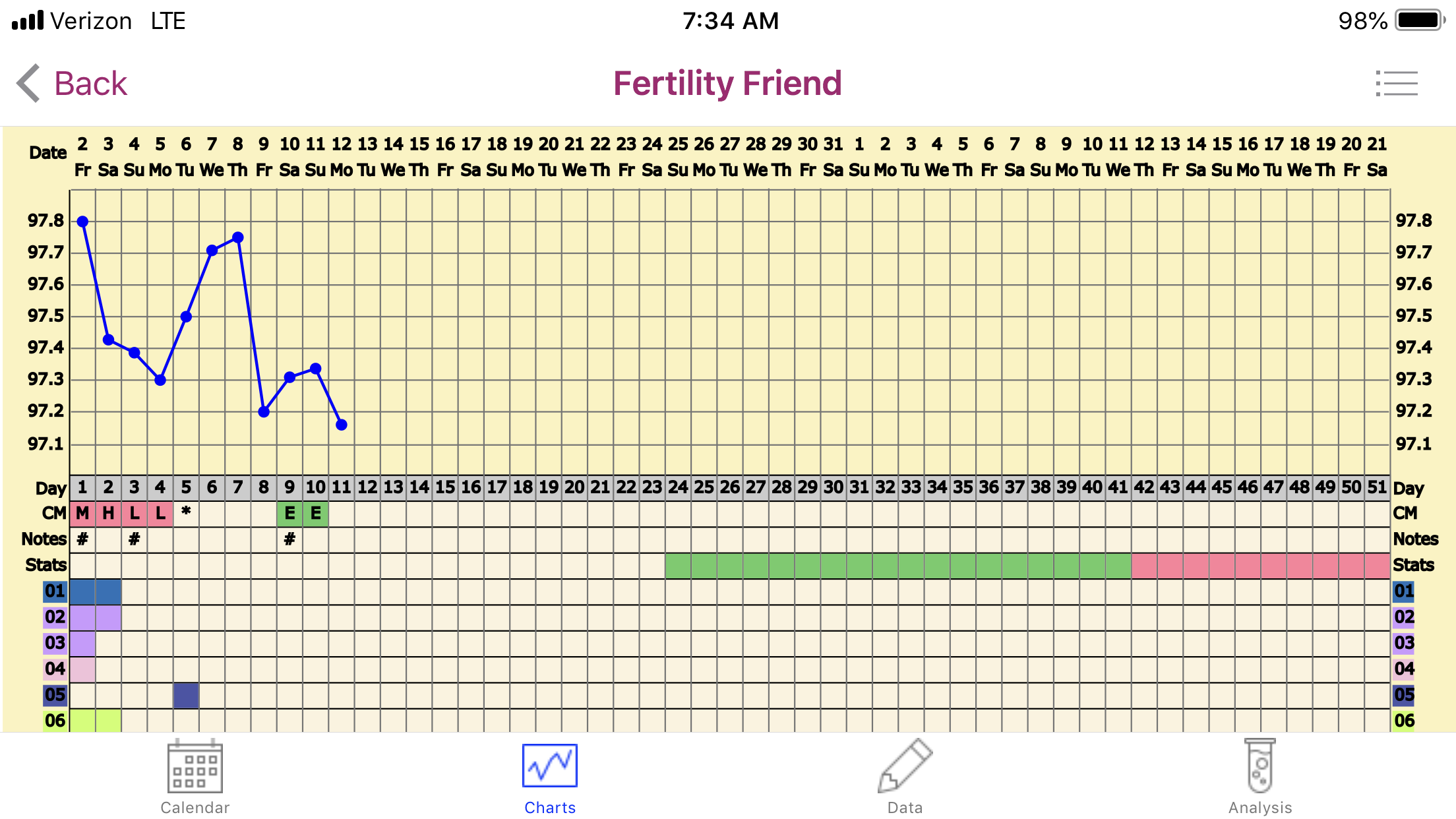 CS/Q: I slept in yesterday and it was hot in our bedroom so I discarded my temp, so now my chart looks funky. Sorry it's huge, I tried to resize but it didn't work lol.