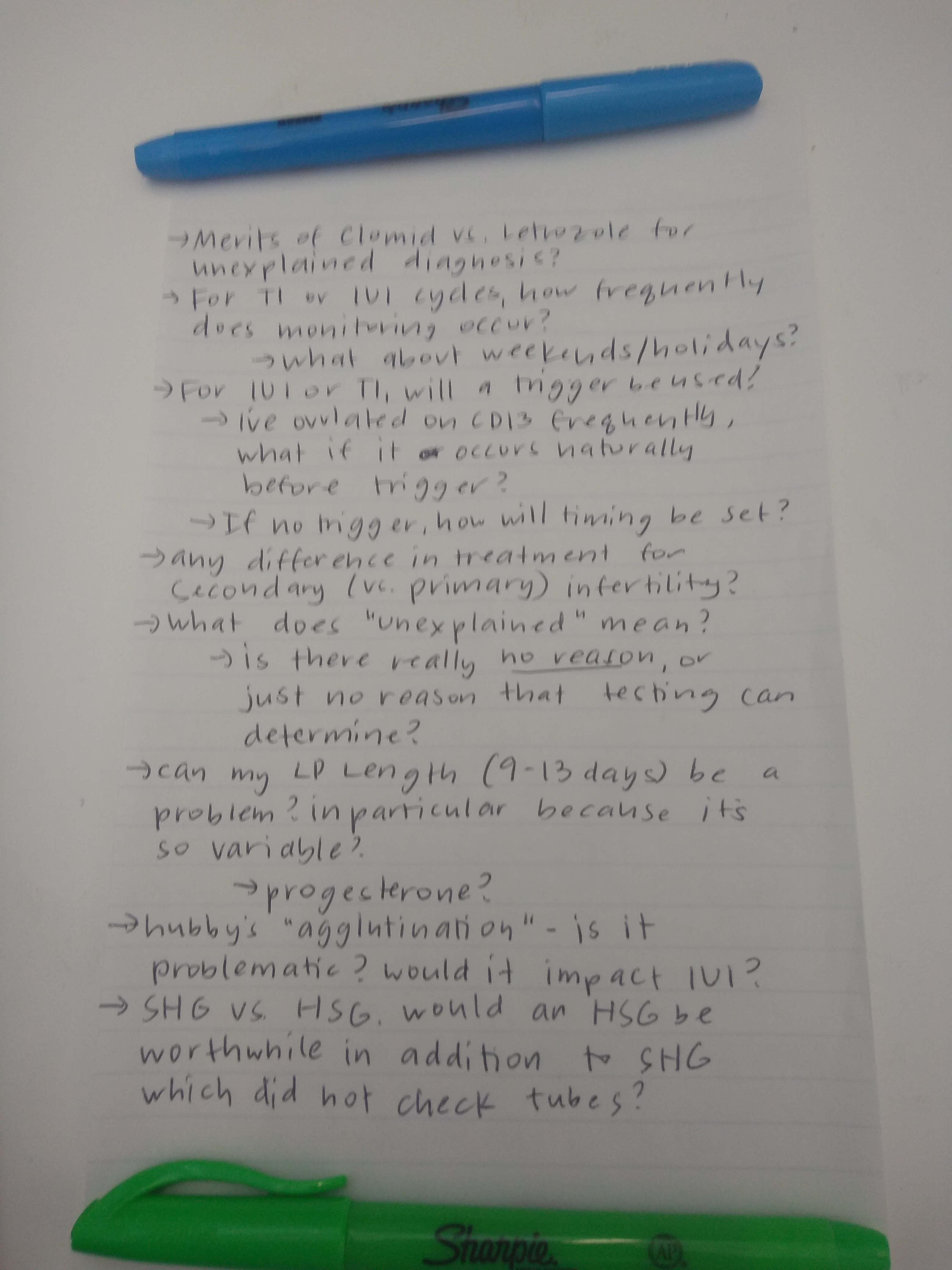 @bluetickgal your list was so helpful! I still have 15 days until my RE consult (not that I'm counting) but you inspired to make my own list!! (it's blurry and I'm sure it will keep growing...)