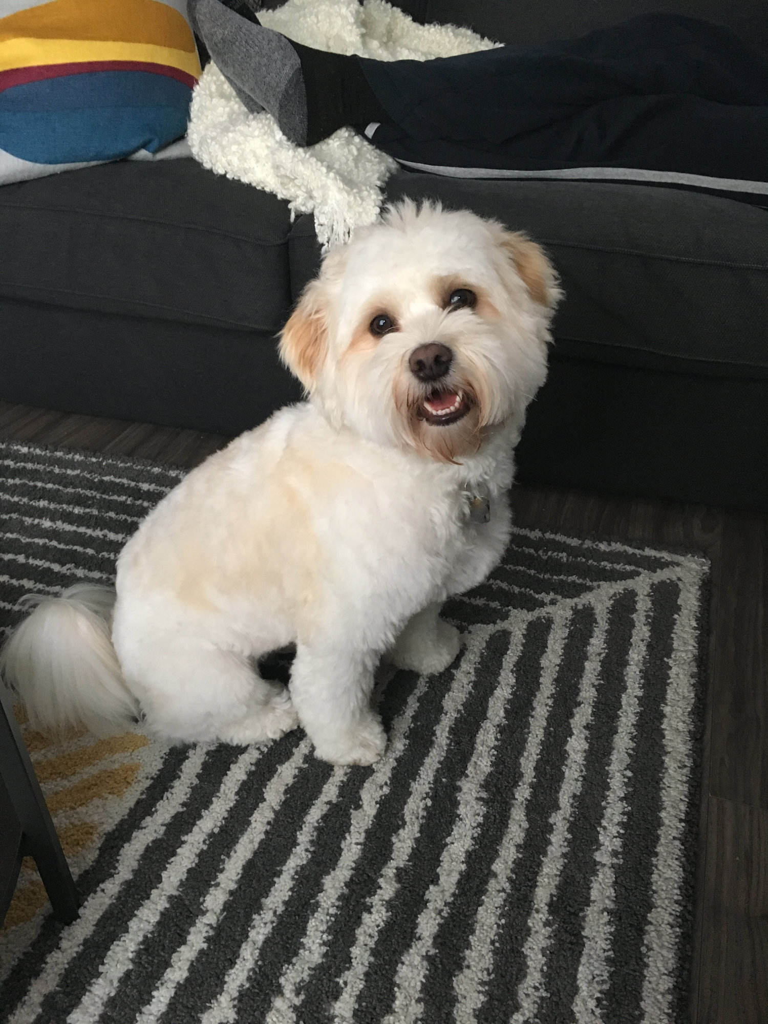 • GTKY: Do you have any fur babies? Show them off and tell us about them. We have a 2 and a half year old Shichon (part Shih tzu and part Bichon Frise) named George. He is quite the mischief maker and very curious! He loves long cuddles and sunbathing on the back porch. His favorite food is probably everything, but especially peanut butter.