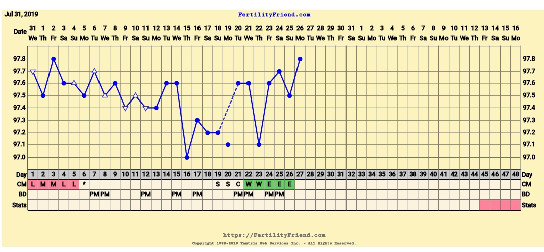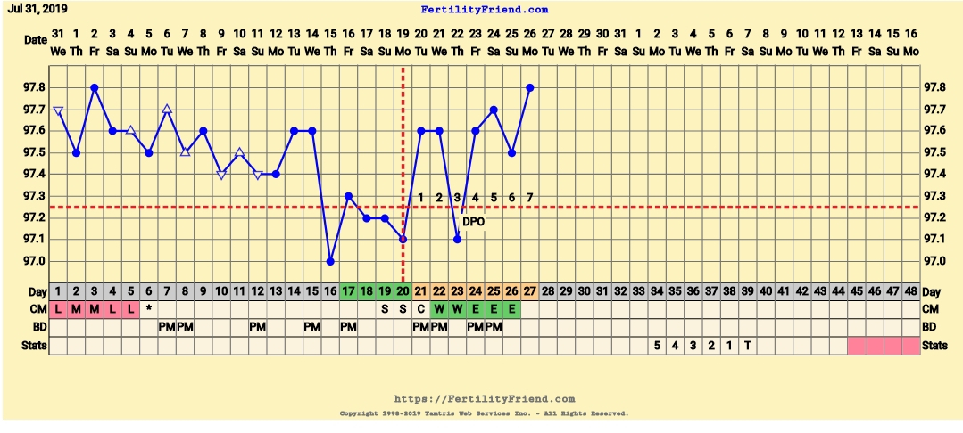 @gingermama29 Enjoy your last week of break and your new video! It’s hard to say what’s going on in your chart. You don’t use OPKs? Maybe CD 23 or 26 could be O.