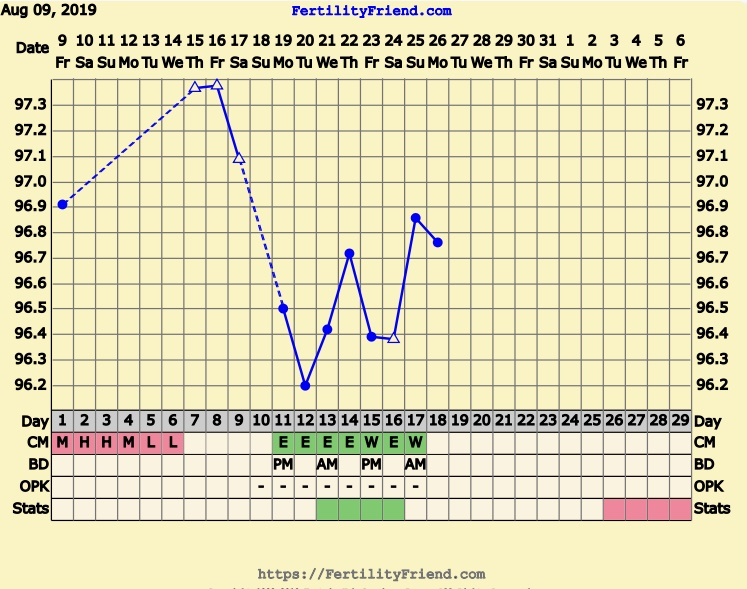 R/R: My stomach has been messed up all weekend, I dont know if I ate something that upset it, or what, but im over it. Im annoyed at myself that I didn't order any more internet cheapies. Im using the clear blue ovulation tests, the regular ones, and I have no idea if ive had a positive yet or not. Time will tell if I get a darker one later today or tomorrow, but they seem to be hovering around the same level yesterday and today. So I don't know if this morning's temp spike is a fluke or not. 🤷🏼♀️
