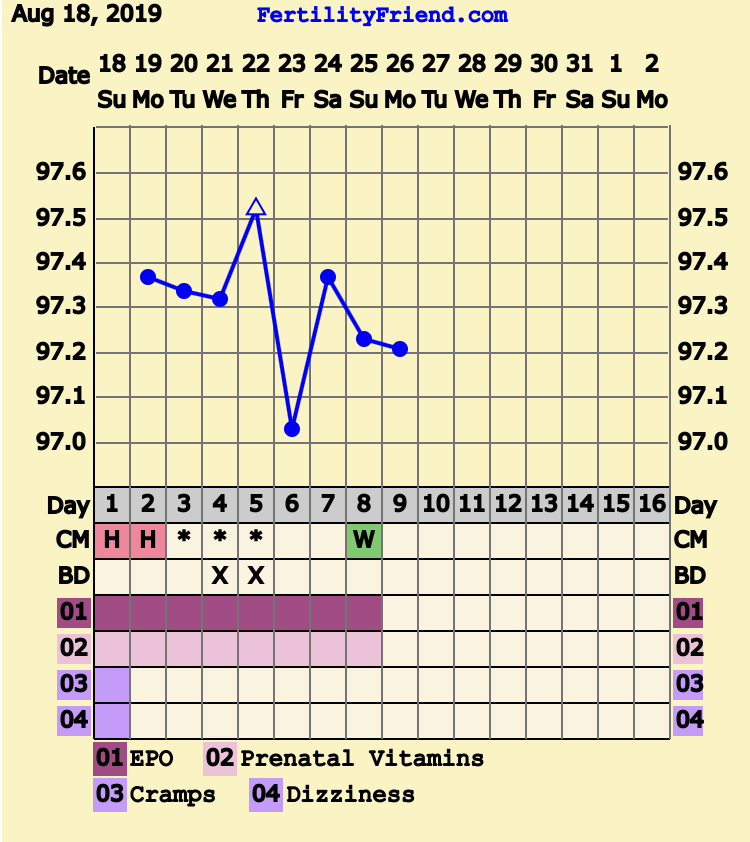 WAYDTGKU: This month just CM, prenatals, shatavari, evening primrose oil, acupuncture. Some testing planned for early September so just chilling out a bit till then.