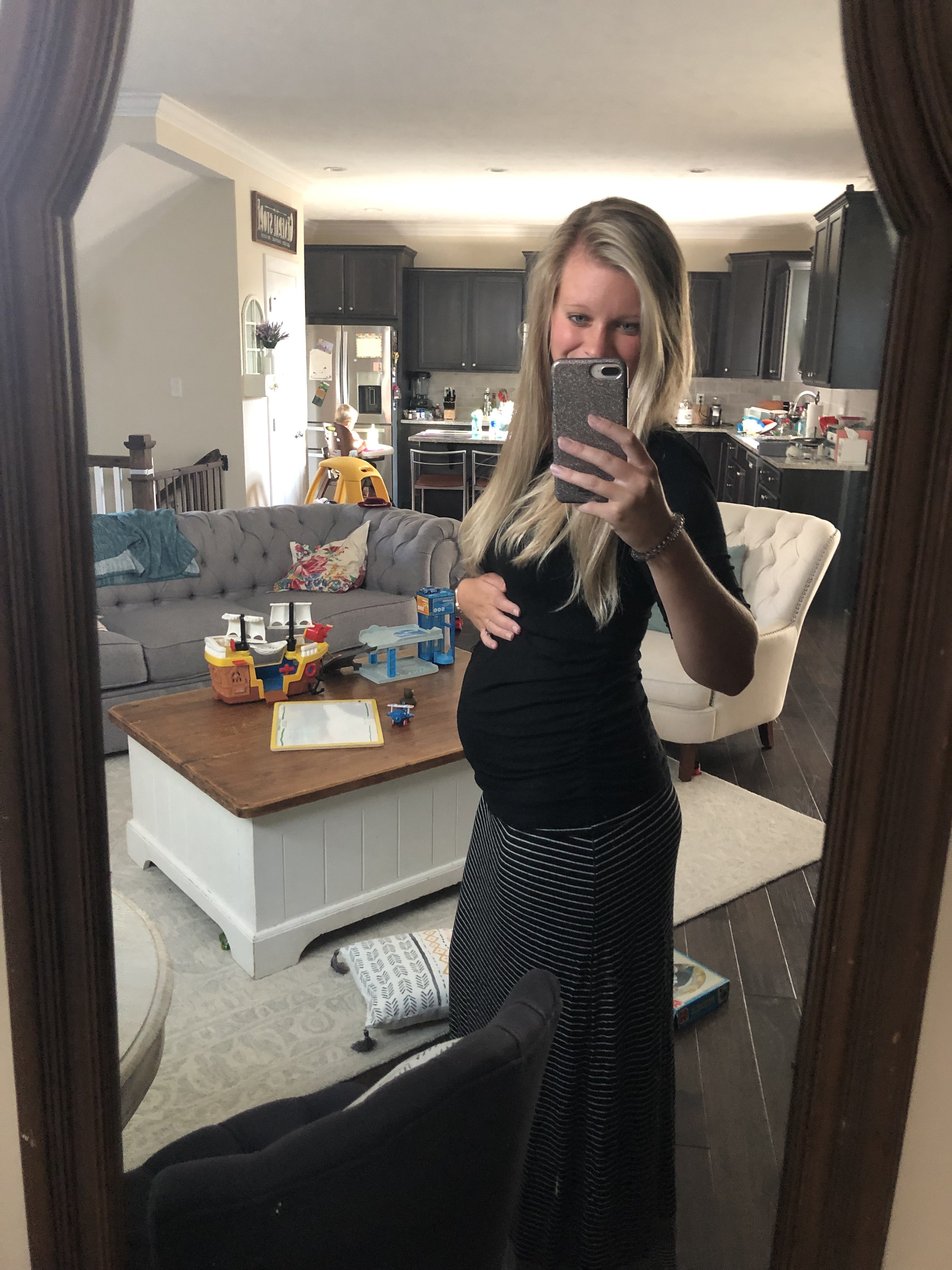 Well I made an attempt to take a bump pic today. Didn't get the best pic because DS was prohibiting me from accessing the only full-length mirror in the house lol.