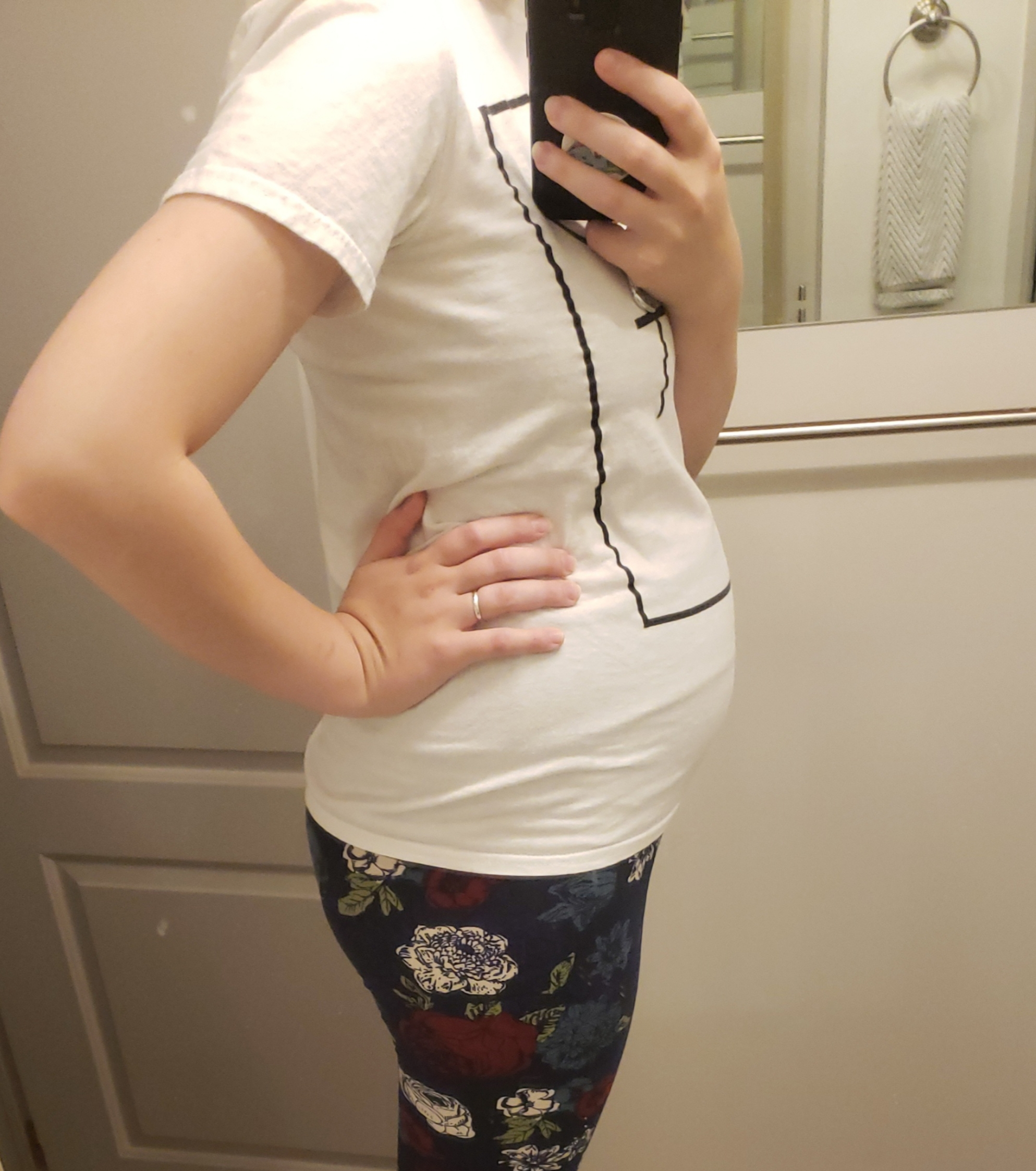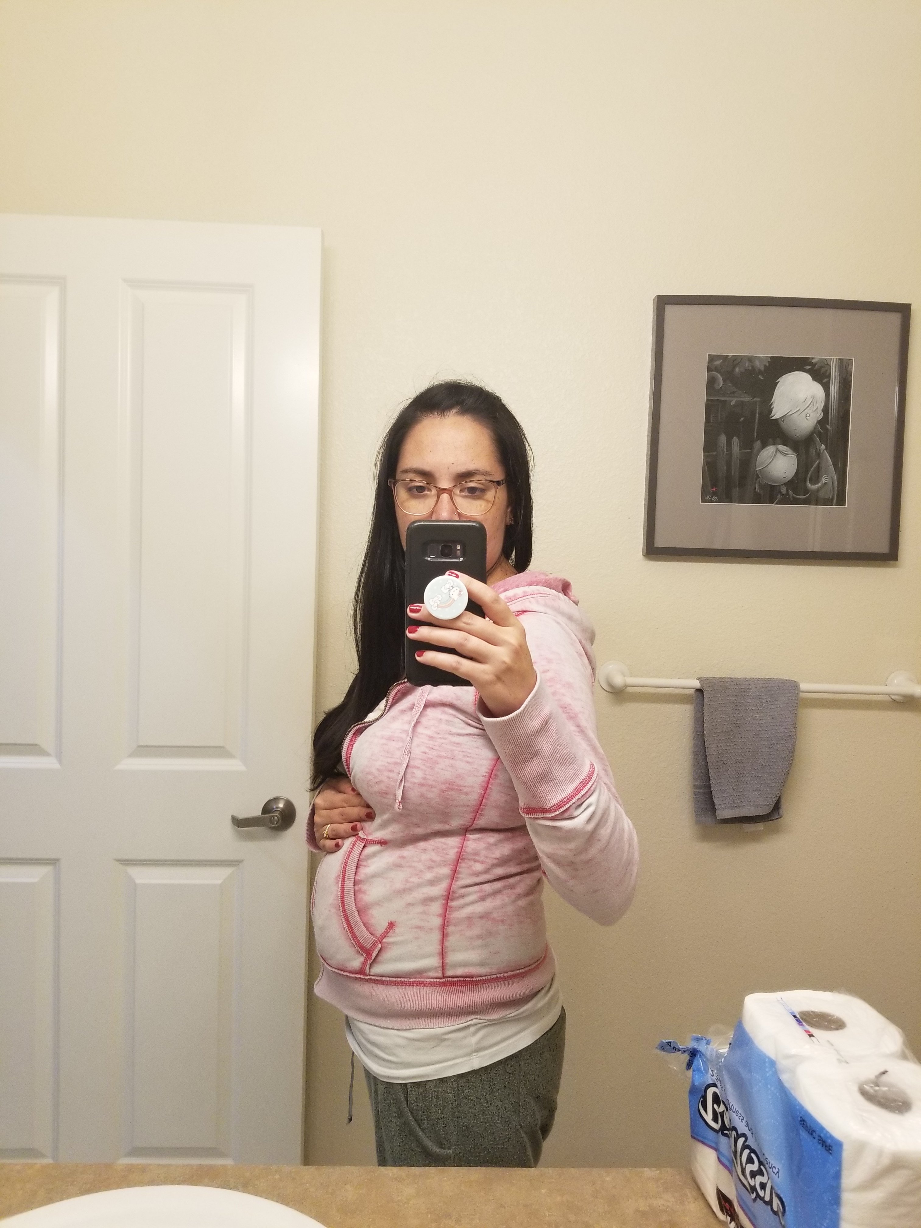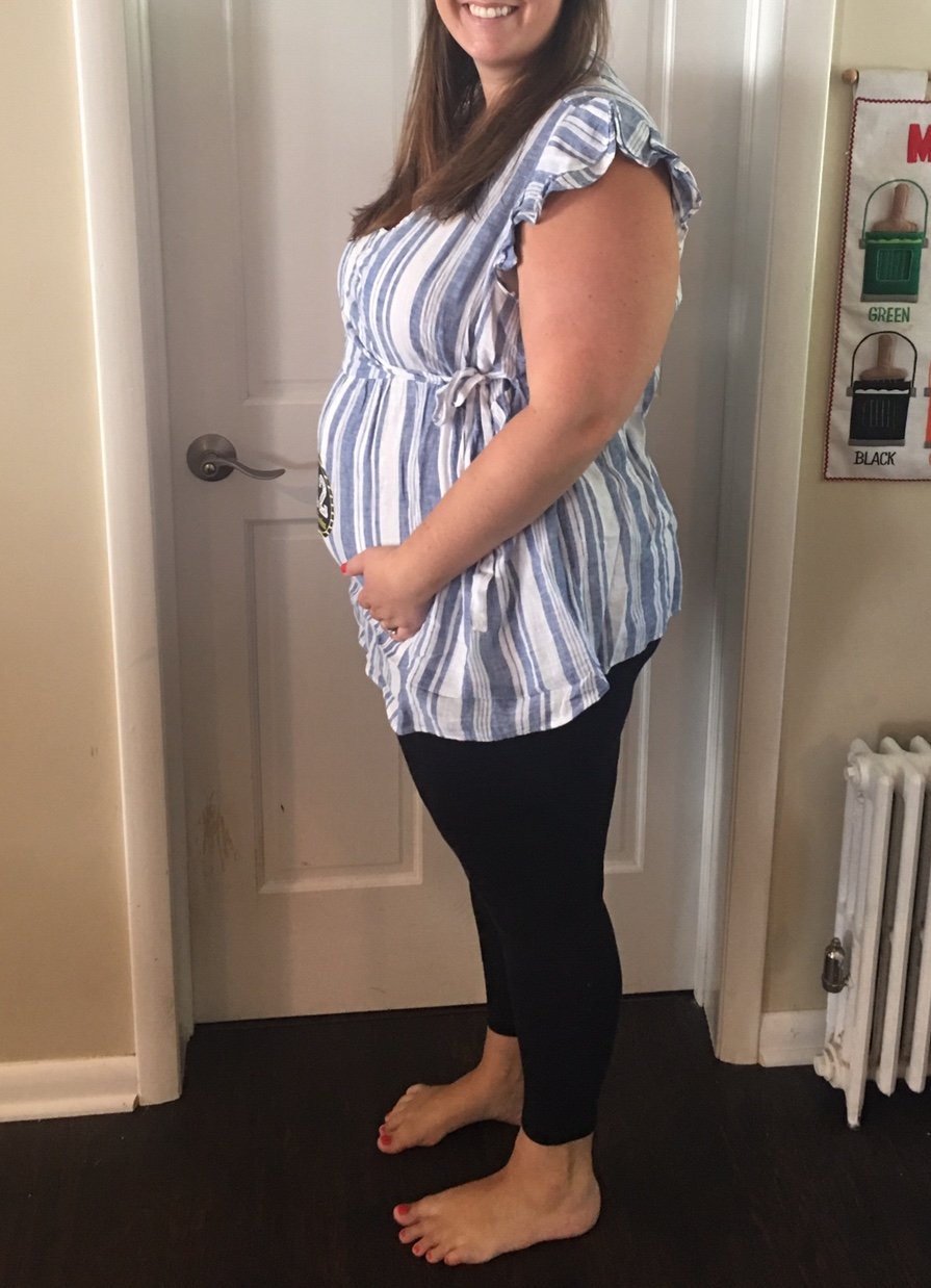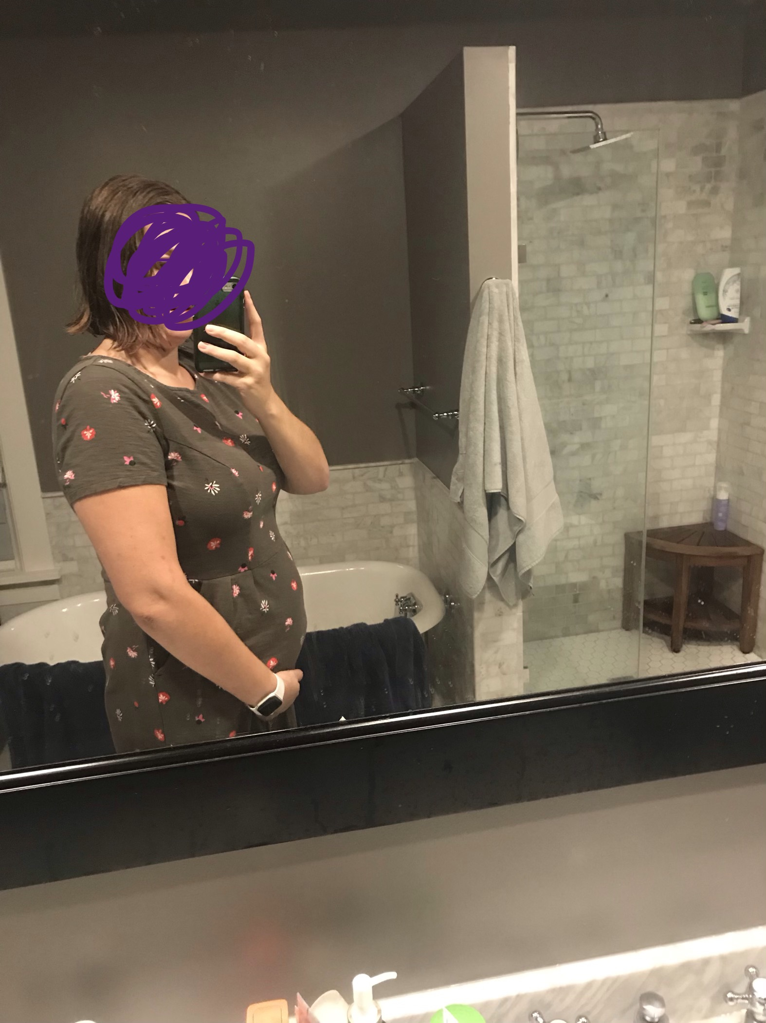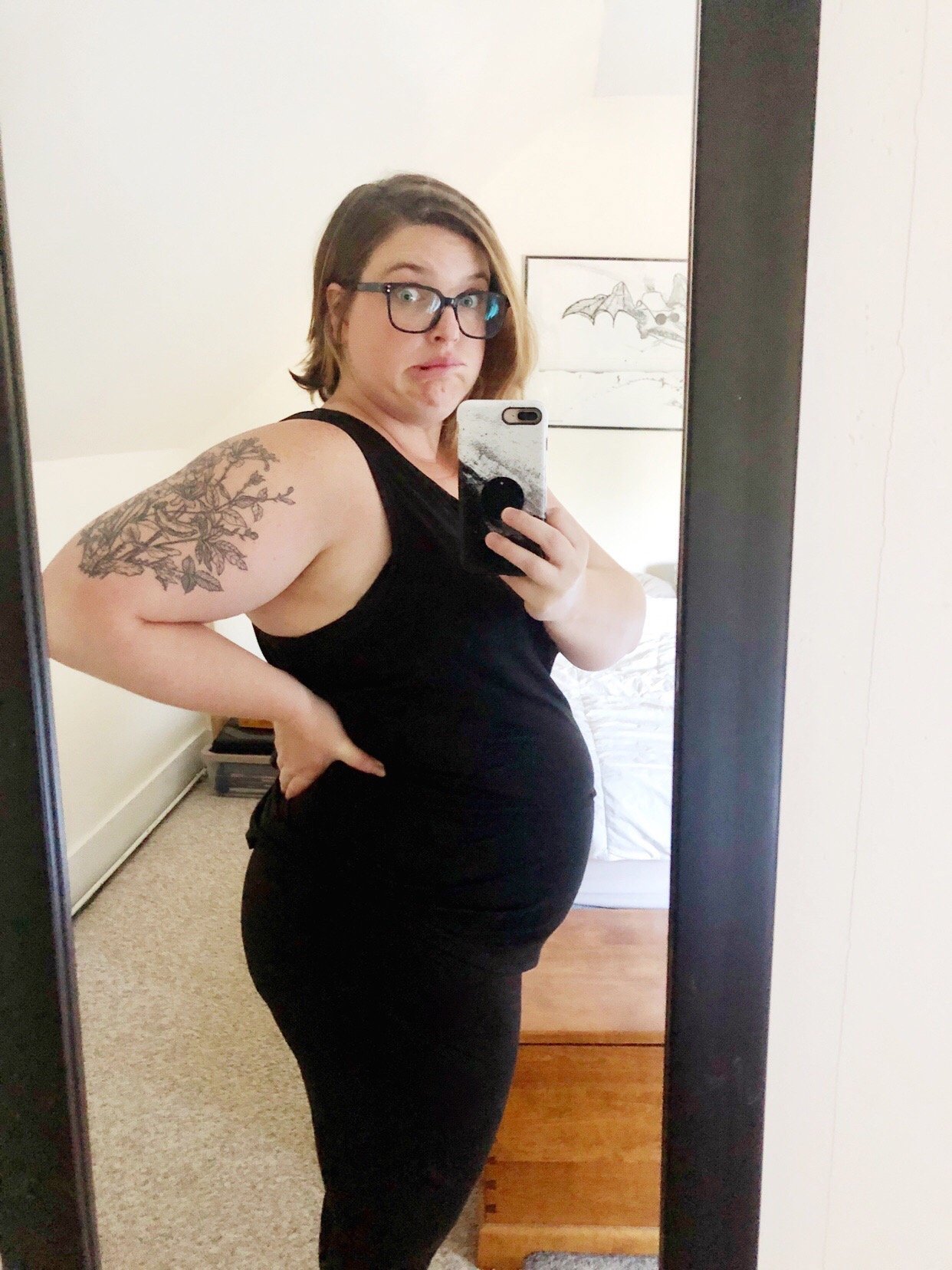 my bump, 10w plus bloat, had to get some maternity pants and I don’t know what will incentivize me to every wear normal pants again. excuse my boobs, they are ginormous. I never carry weight in my belly so Its Interesting for me