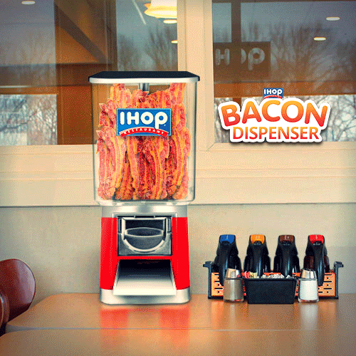 Ok, I came across this Gif by total accident and I literally wish these were legit real and IHOP had these machines at the table haha 😆 I already know @saladflambe wouldn’t approve of them as she hates bacon lol.