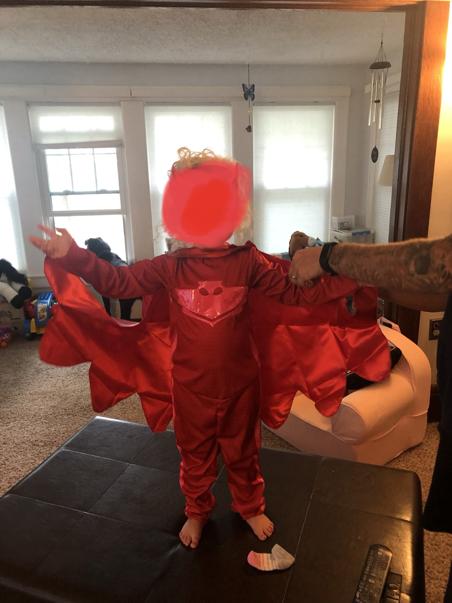 So mostly I’m not a big Halloween person. I like the time of year but I’m just not one for dressing up. However I love watching how excited DD gets over dressing up. This year she is going as Owlette (from the PJ Masks, tv show on Disney). She has been planning this costume for 6 months. I let her try it on last weekend and she cried tears of joy. So cute.