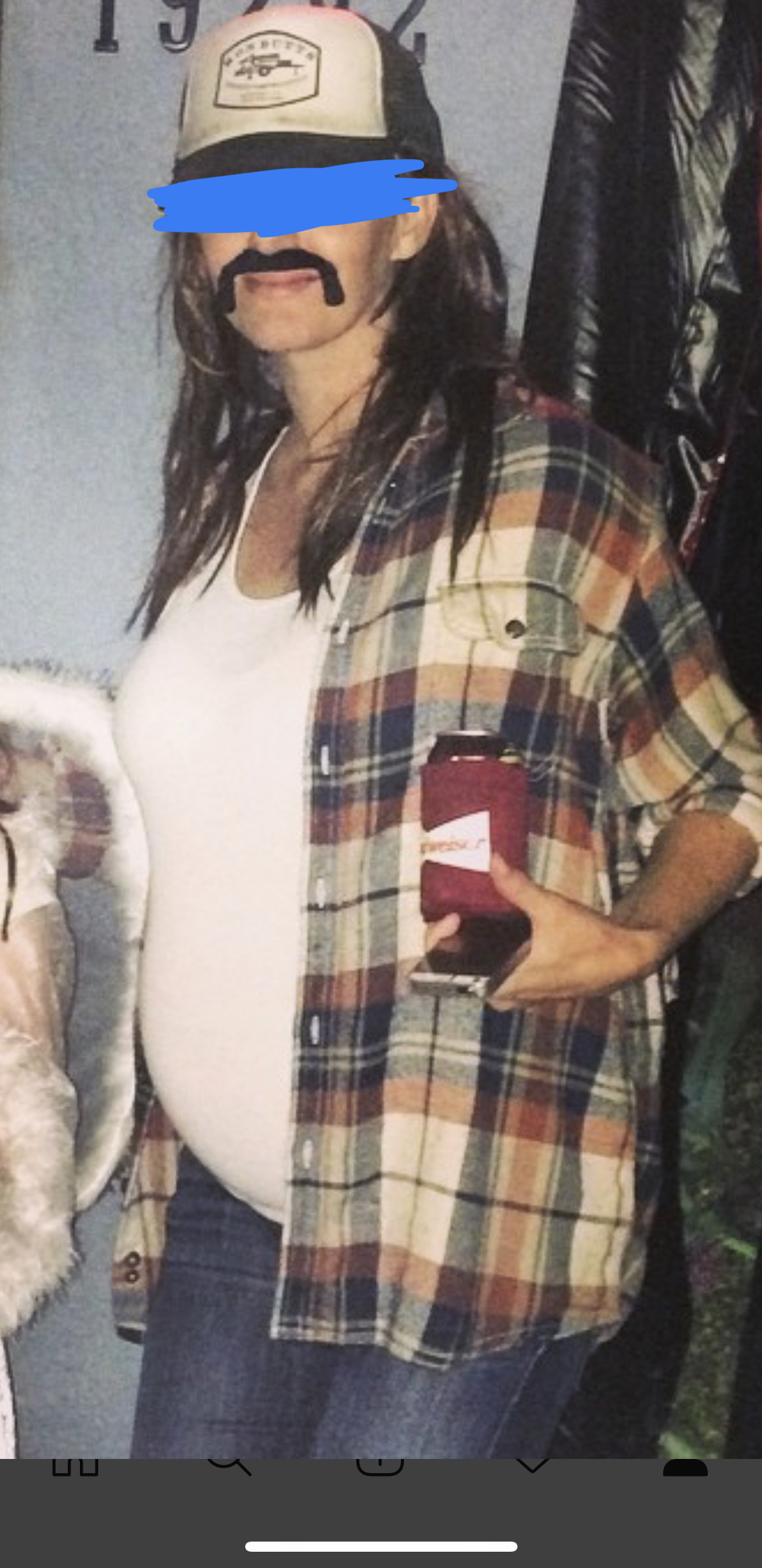 I may do a repeat of my first preggo costume. It was a trucker dude with a white tank and handlebar mustache. Was going for the beer gut look.