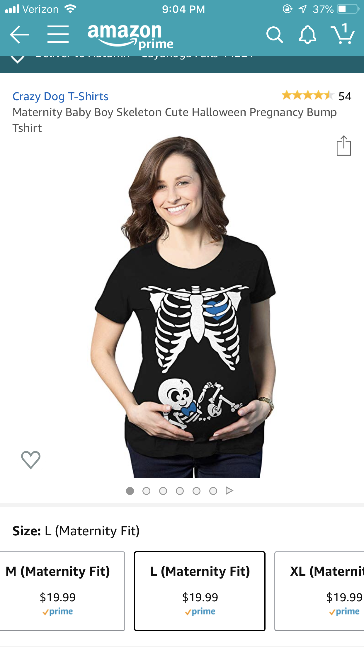 For myself I’m getting one of those pregnant skeleton shirts for work and just will wear that for trick or treat as well. I plan on telling my students on Halloween or whatever day we have class parties, so that will be a fun accessories to share the surprise. I’ll be 20 weeks by then so let’s hope I have a bump. I was much bigger with DD by this point so we will see.