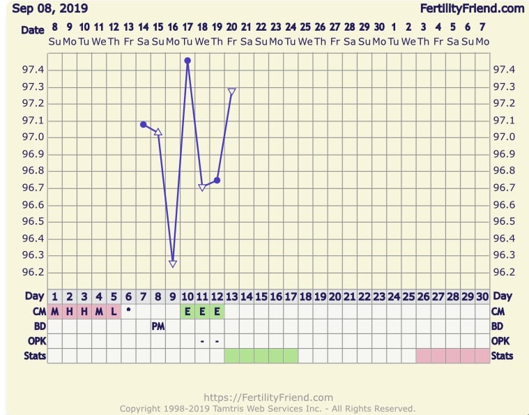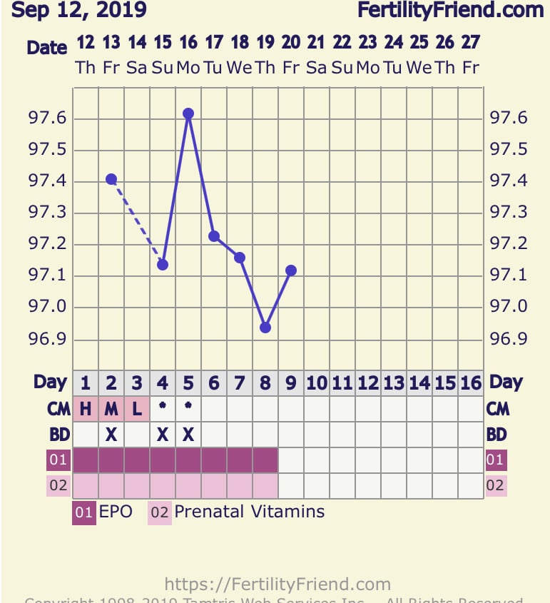 WAYDTGKU: PNV, COQ10, Vit C, Vit E, some other supplements that I can't remember right now, BBT, tracking CM, OPKs, probably IUI this cycle