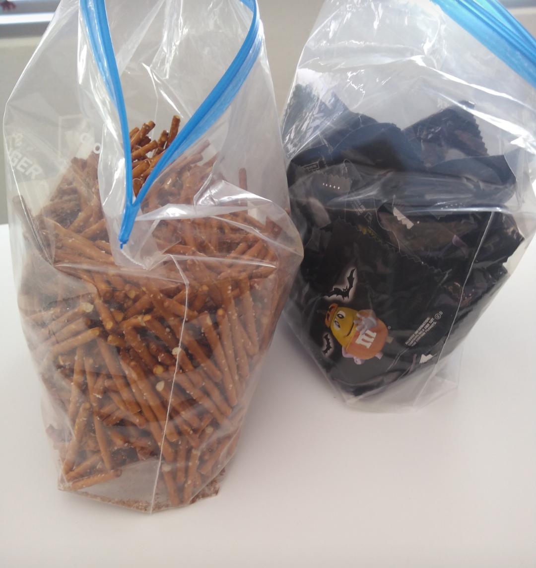No idea why, but food always randomly appears at my desk at work. Today: a gallon bag of pretzels. I thought of you immediately.