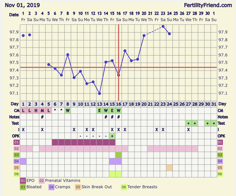 A hot mess. I stopped temping when what I thought were PMS symptoms started. I even had a weird pretend shift and slow rise around O. I thought I messed up timing for O. Only my OPK gave me any sort of confidence. And it took a while for FF to give me crosshairs.