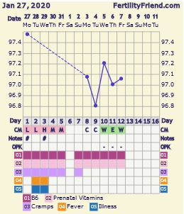 CS/Q: So I usually try to wake up and temp right at 6, but today I had to get out of bed to pee at 5 so I temped then and my temp was almost a degree lower than normal. I went back to bed but then hit snooze on my alarm and didn’t get up until 7, and when I temped then it was 0.2 over my normal. Would you keep the latter, or discard both? Femometer is now thinking I O’d yesterday (on CD 11, wut) but FF is still thinking it will be Tuesday (CD 16 again) which is probably going to be right based on the negative OPKs. I think maybe I just need to either temp or do OPKs and probably the latter. TL/DR: I suck at predicting O and am driving myself crazy.