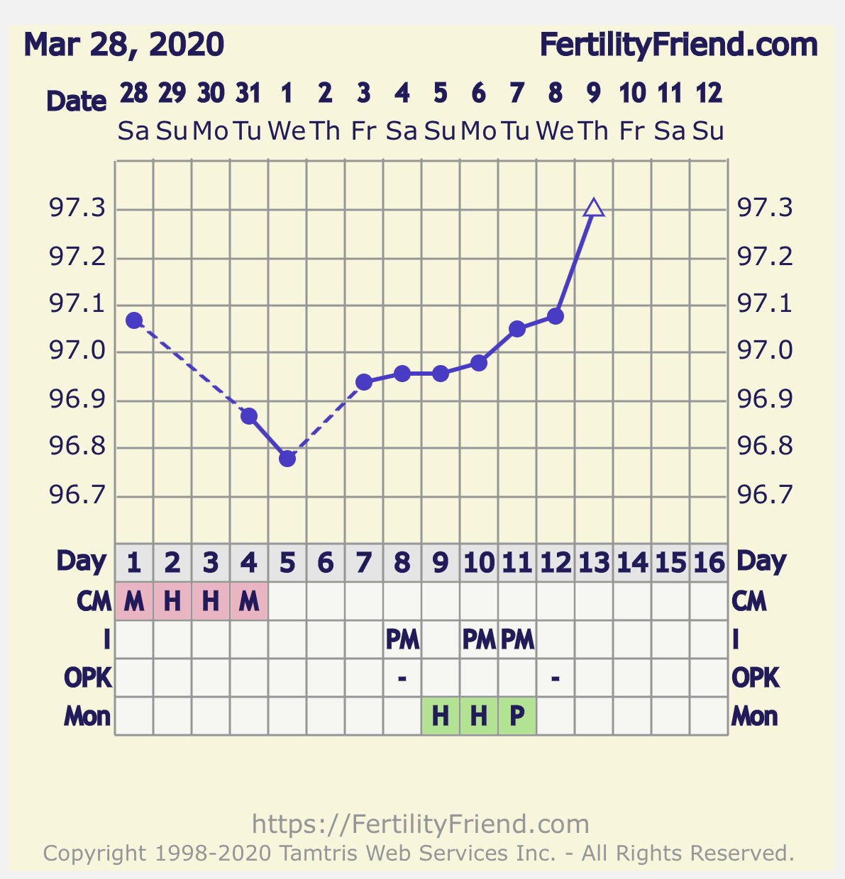 R/R: Got a very positive OPK this morning, so I’m pretty psyched about that! Other than that having a fairly quiet day. Even though we are all working from home, our district is still having spring break, which starts tomorrow. So I’m feeling minimally motivated to do work today haha!