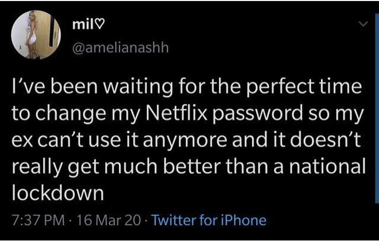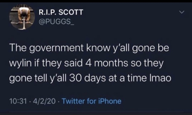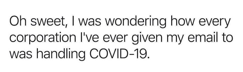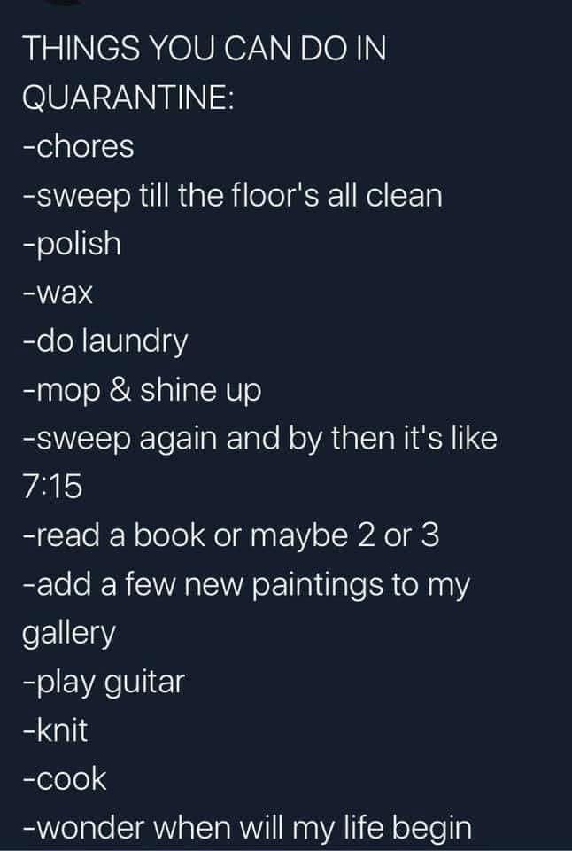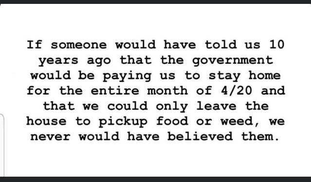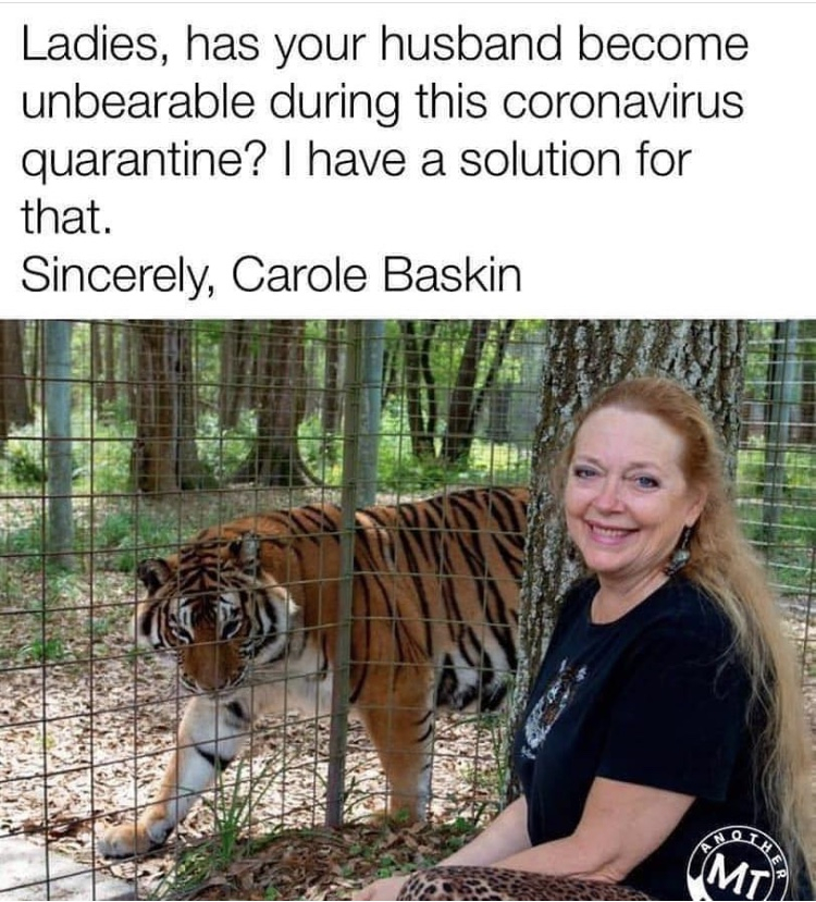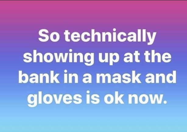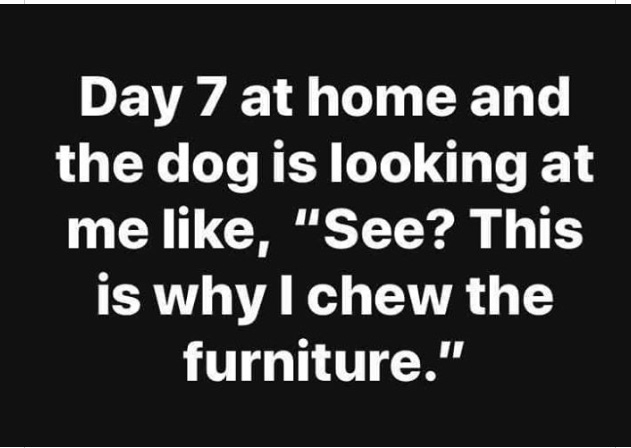 I wish I could stop being so busy at work so I can save some good pics for these funny threads. This is all I got (quarantine/pandemic related):