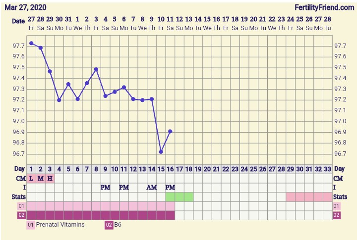 WAYDTGKU: prenatals + B6, BBT charting, taking a break from OPKs and CM tracking this month