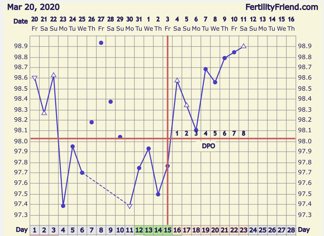• @mindyb2019 Probably tomorrow or Tuesday. Feeling a little crampy today and had a 0.3 temp drop so I think it's impending.