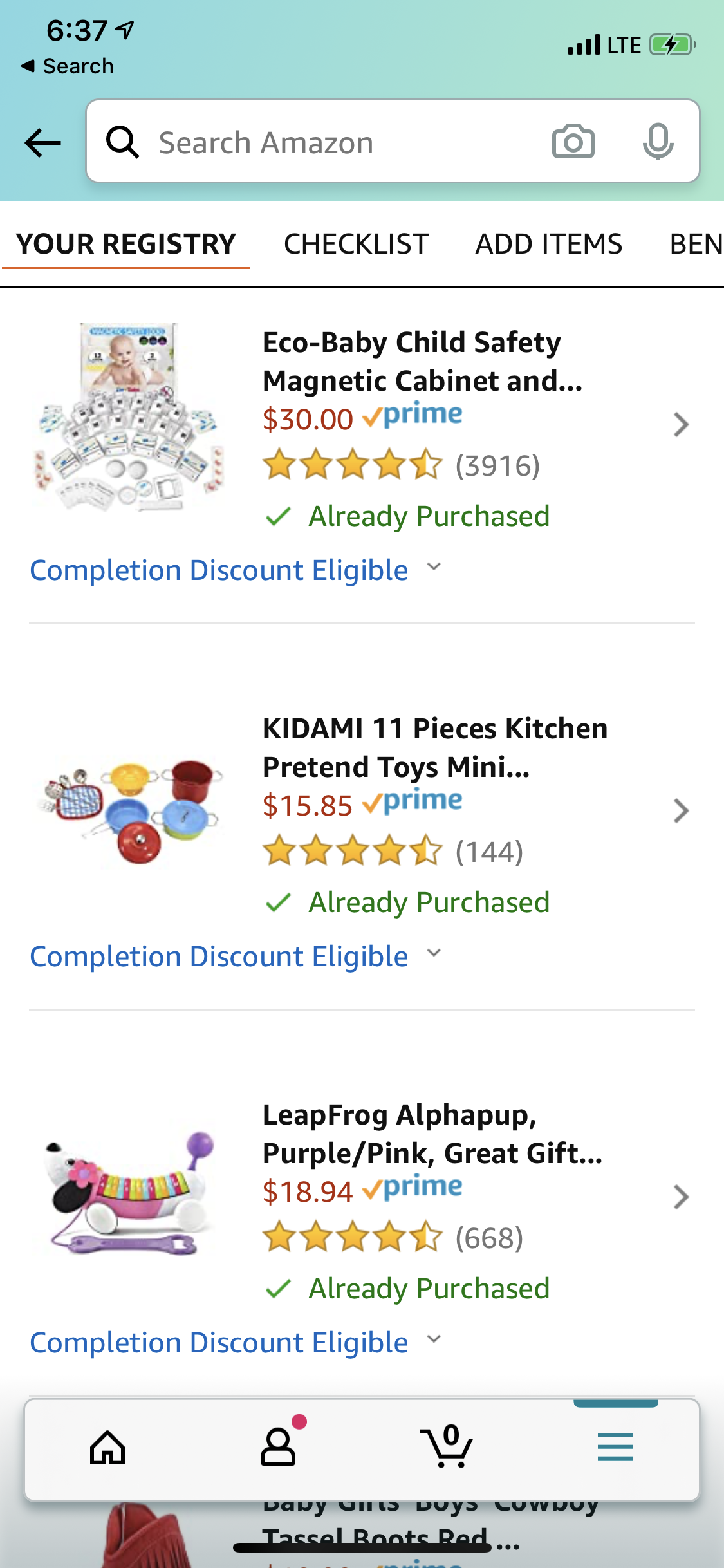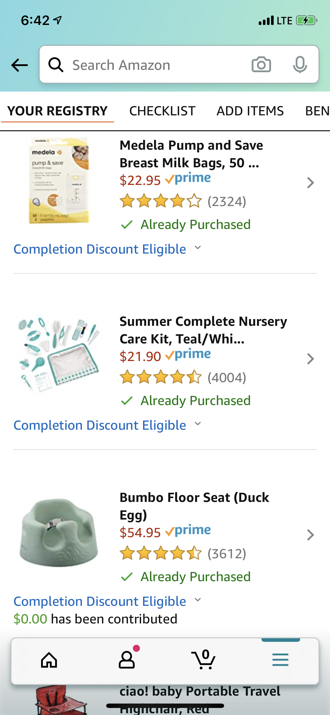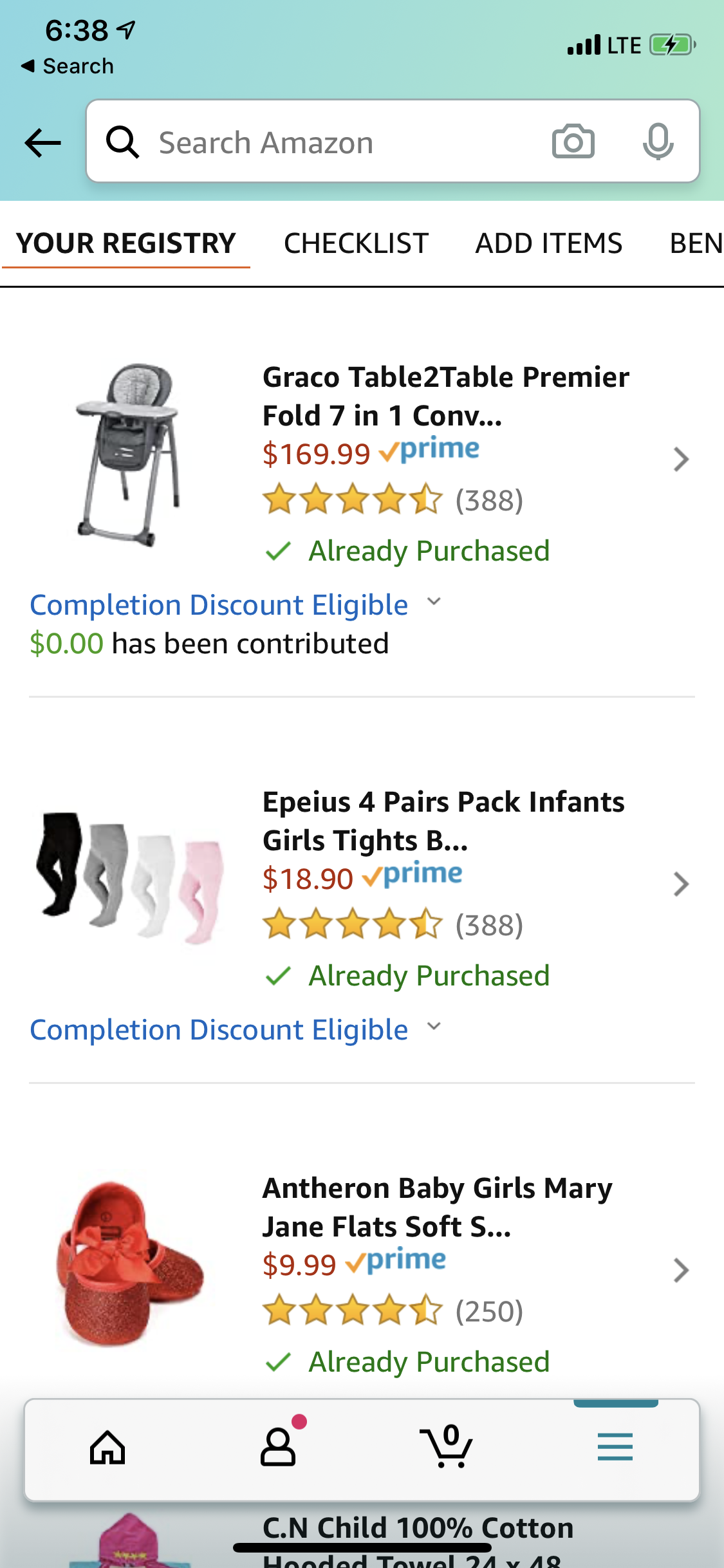 I wish I would have put more toddler things on the registry like utensils, cups, suction plates/bowls, larger size sleep sacks.