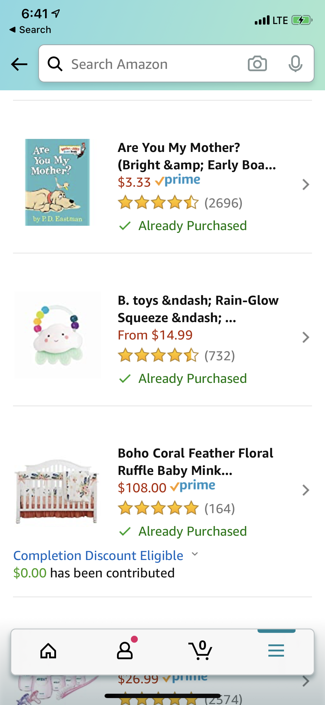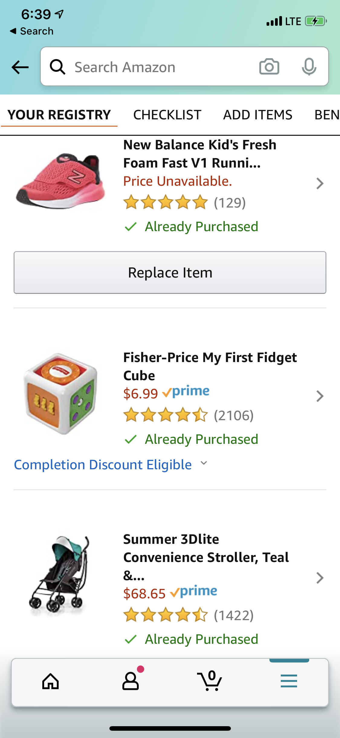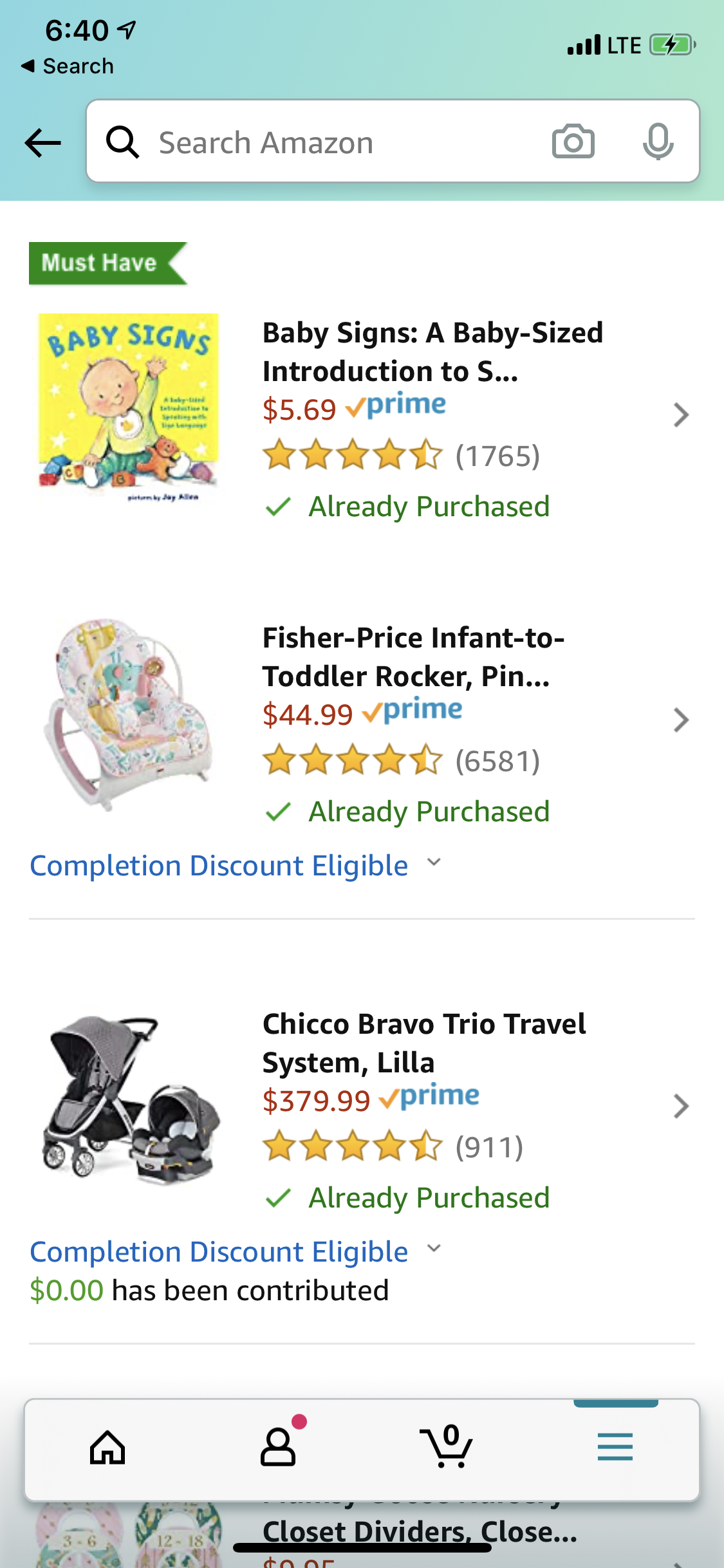 I wish I would have put more toddler things on the registry like utensils, cups, suction plates/bowls, larger size sleep sacks.