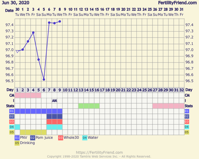 WAYDTGKU: temping, tracking CM, OPKs, PNV, baby aspirin, progesterone after O