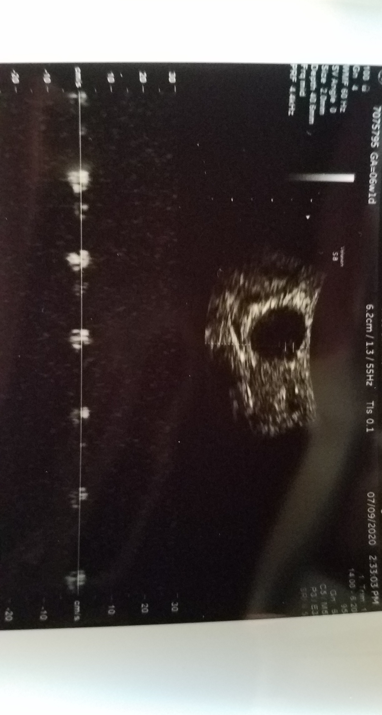 Posting a picture of my beautiful yolk sac from Monday now that I figured out how to cross out my information.