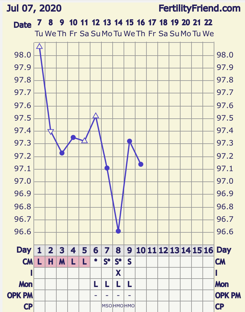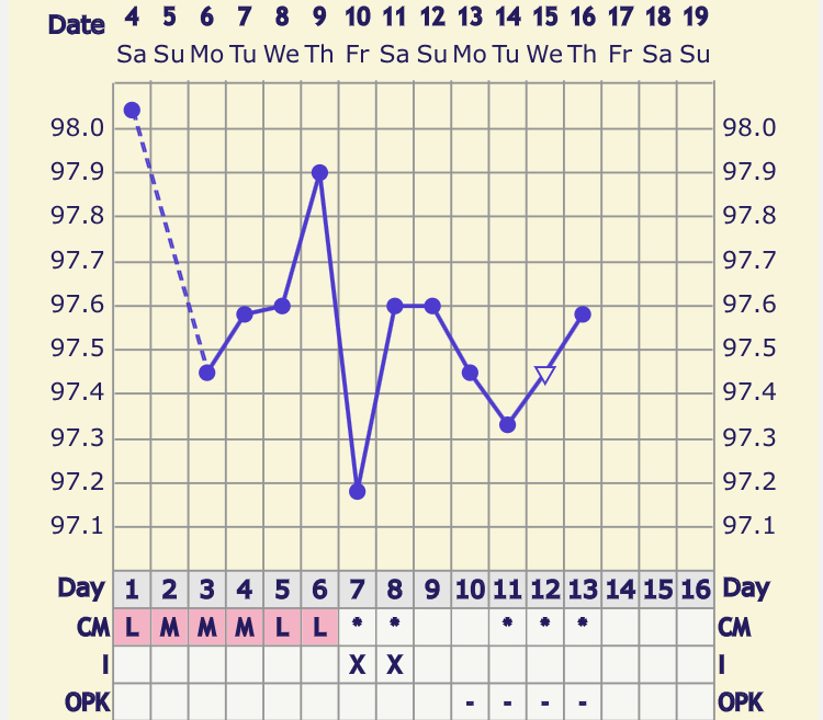 WAYDTGKU: temping, tracking CM, OPKs, PNV, baby aspirin, progesterone after O