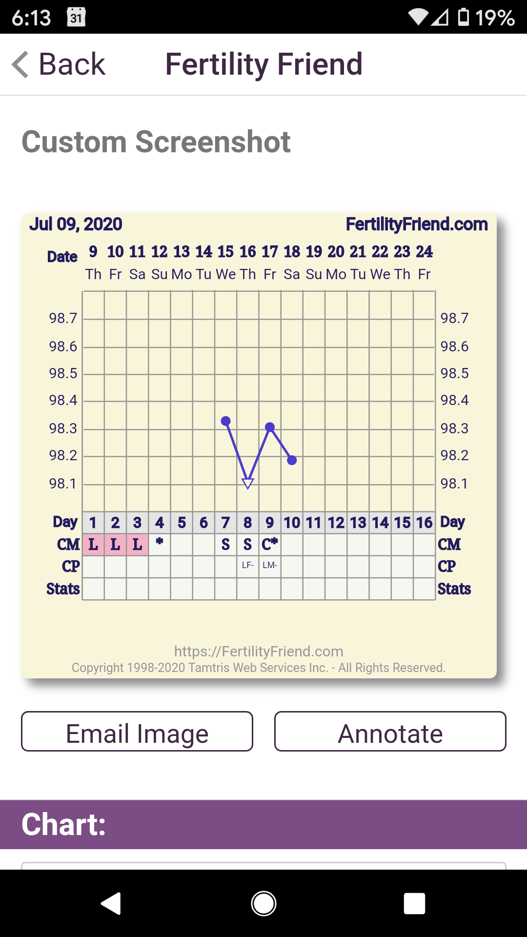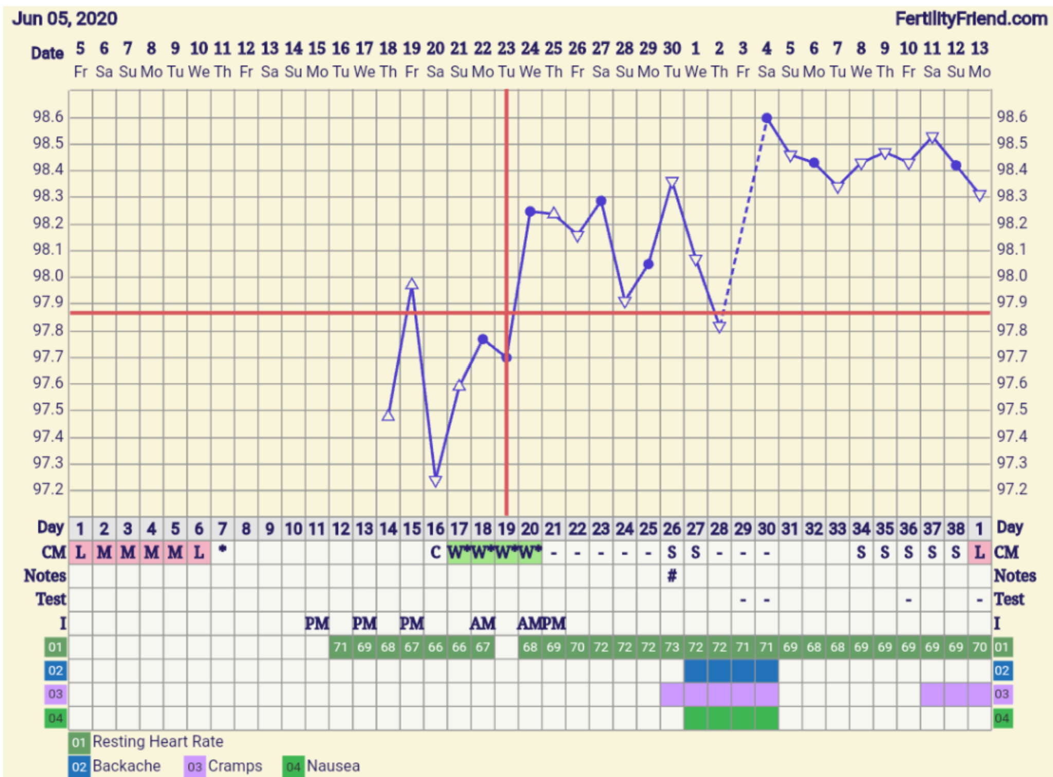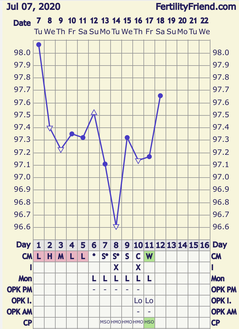 CS/Q: last month's coverline was just under 97.9 and my last 10 temps (19day LP) we're 98.3-98.6..i didn't temp on my 2 super heavy mornings but my temp only came down below last month's coverline today. AND my period is shorter than usual. My period started super late on CD1 (not normal for me) and was basically spotting yesterday afternoon. Today I'd still call spotting but shortest period of my entire life, I think. After a 38 day cycle and 8 days of bleeding the previous period? I'm so confused. Also, I read that spotting mid cycle can be an an-O thing so I'm really thinking last cycle was an-O. Any thoughts? Last month's and this month's charts in spoiler. I'm doing proov strips this cycle and OPKs as well which I didn't do last cycle. I'm also coming off of BCP with some other hormone stuff that should be regulating so I'm hopeful about this cycle and know an-O can and likely does happen to everyone even without an underlying issue.