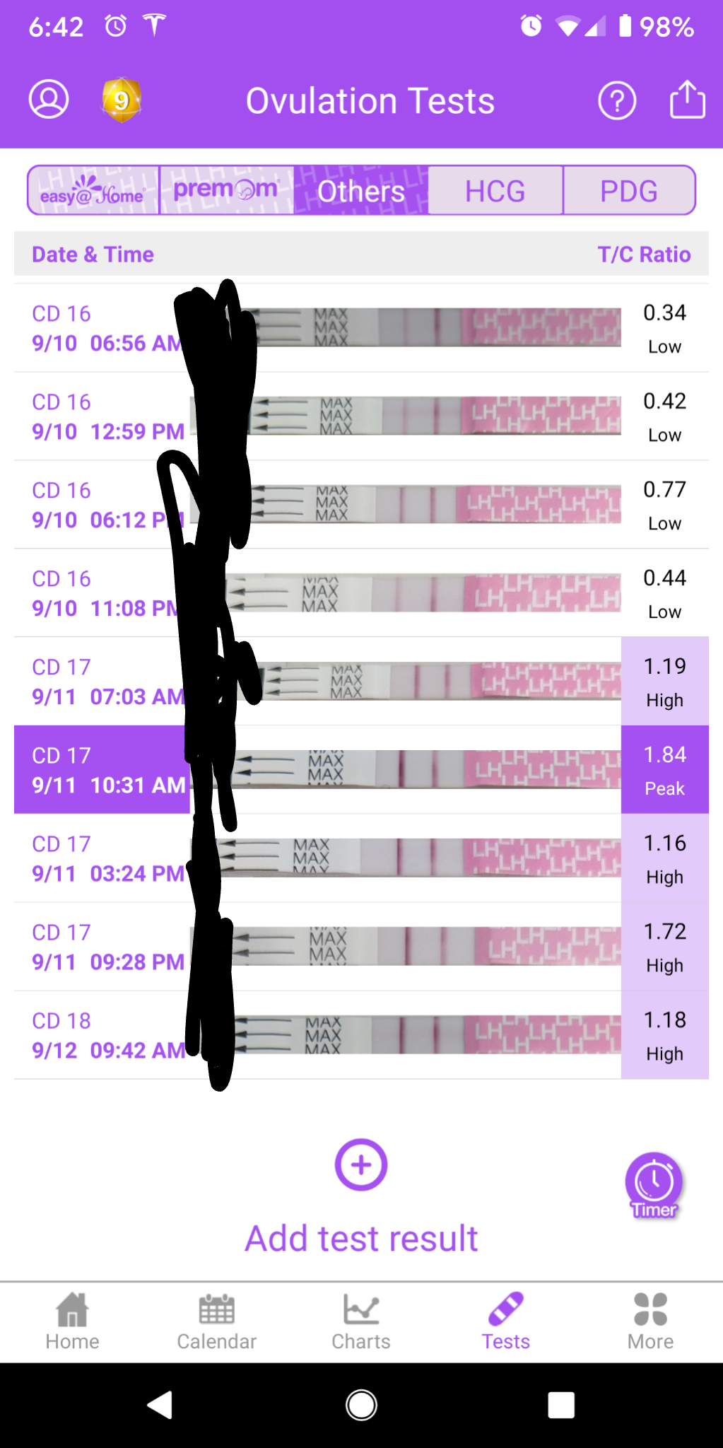 @fitzfizz here are my OPKs from Weds and Thursday. I originally thought I missed my surge but I tested every time I used the bathroom on CD16 and I always have positives for at least 24 hours. I don't know. I clearly surged on CD17