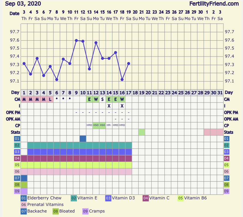 WAYDTGKU: vitamins, BBT, OPKs, CM CP, HIO EOD
