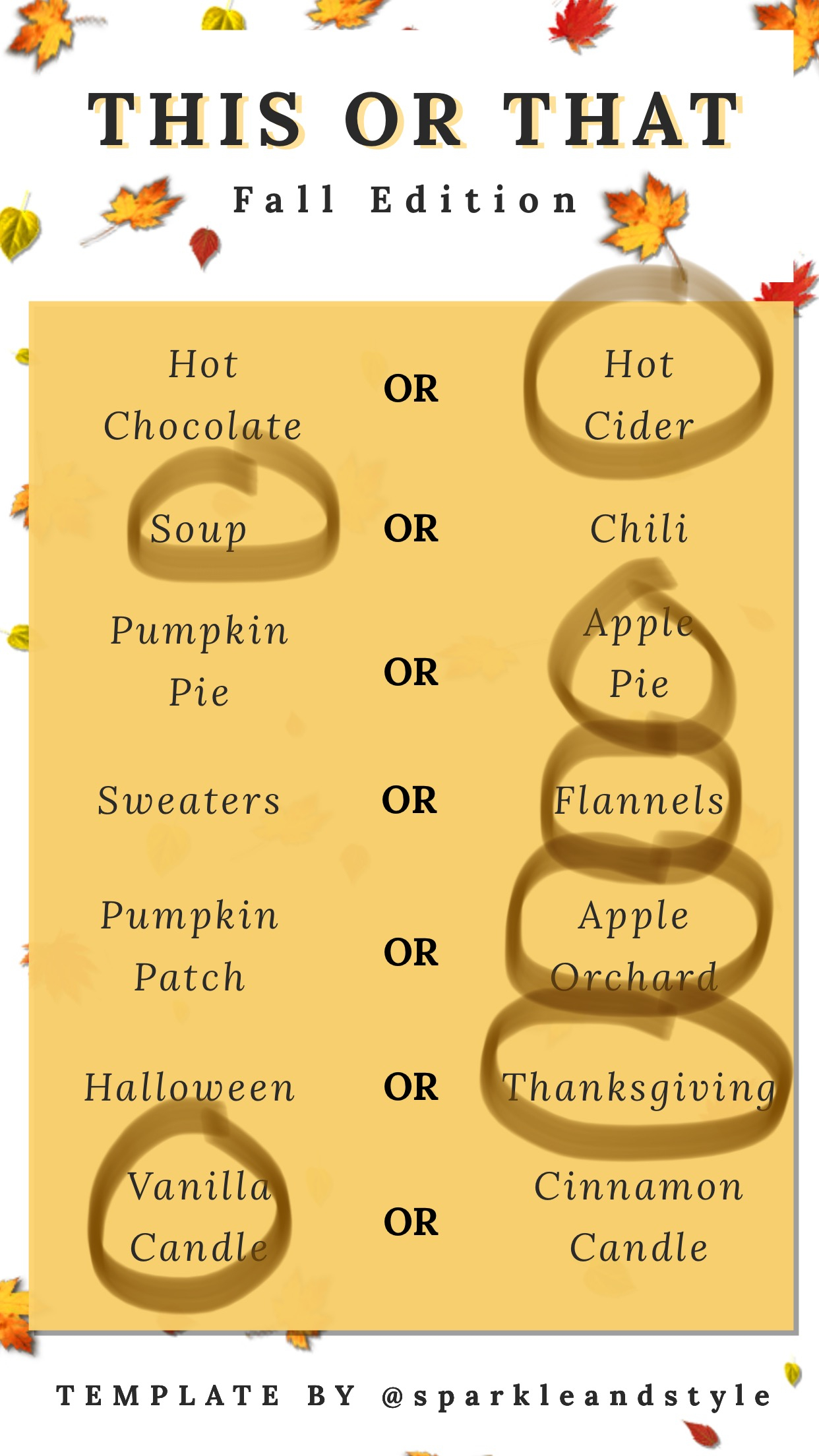 GTKY: hot chocolate, soup, neither, either, pumpkin patch, Thanksgiving, cinnamon candle