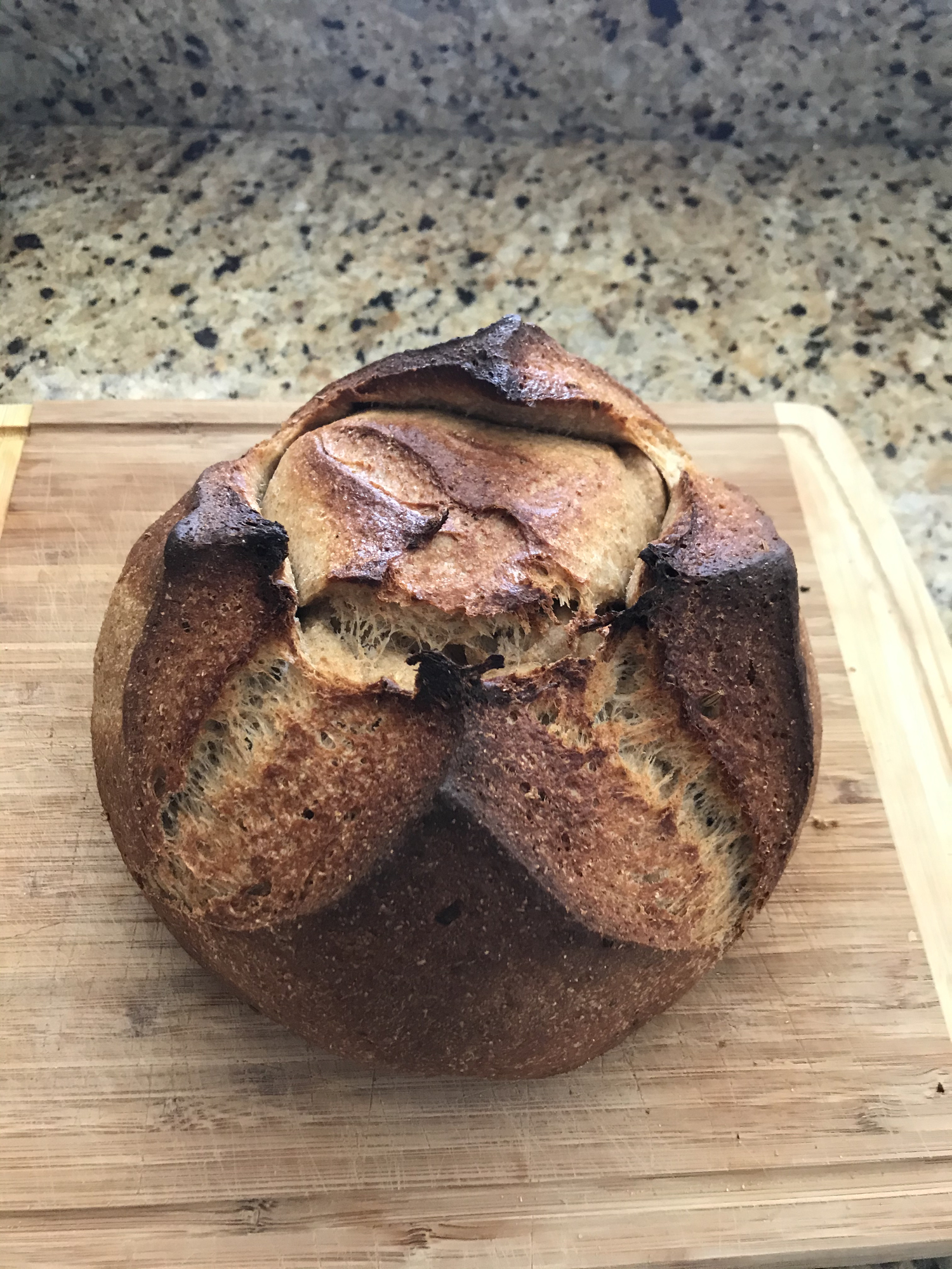 Thanks, @fitzfizz! Looks delicious, now I need to find myself some rye flour. I usually use my Dutch oven to get a nice crust, but the recipe I used the last couple of times just came out flat. Tasted fine, just way too dense, so I need to practice some more and troubleshoot. I can't tell if the recipe is bad, there's not enough gluten development, I'm overproofing, or I just have bad technique. It rises well, but then collapses when I get it into the proofing basket (recipe says to not punch down or deflate, but for the life of me I can't get it out of the bowl without it deflating). For my bridal shower my MOH gave me "Flour Water Salt Yeast." I've read it and made the Saturday bread once, but I think I need to really sit down and work my way through it.