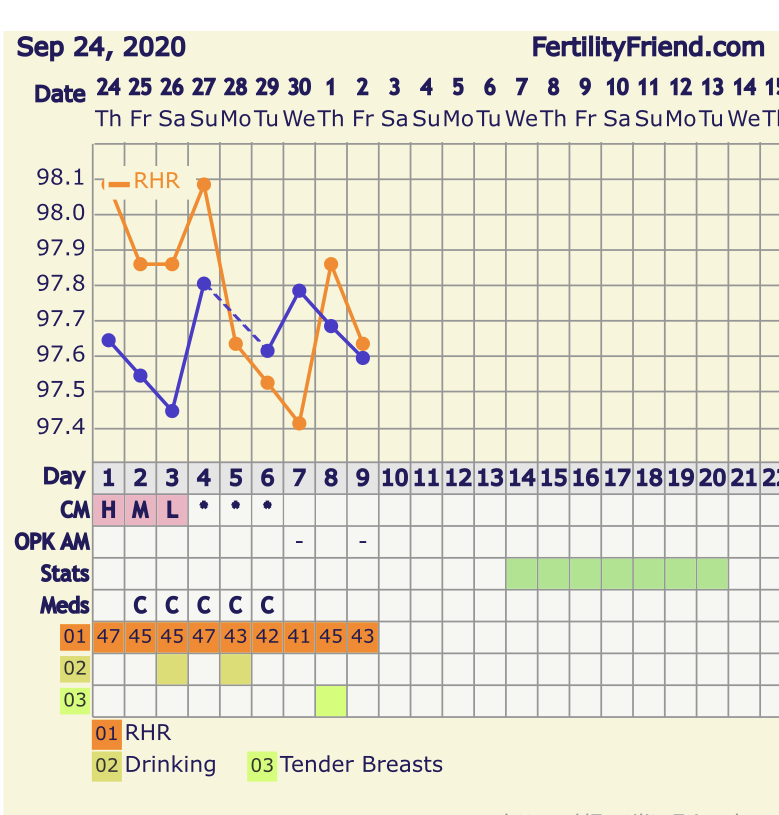 WAYDTGKU: OPKs, BBT, Cm/Cp tracking, HIO, prenatals+B6