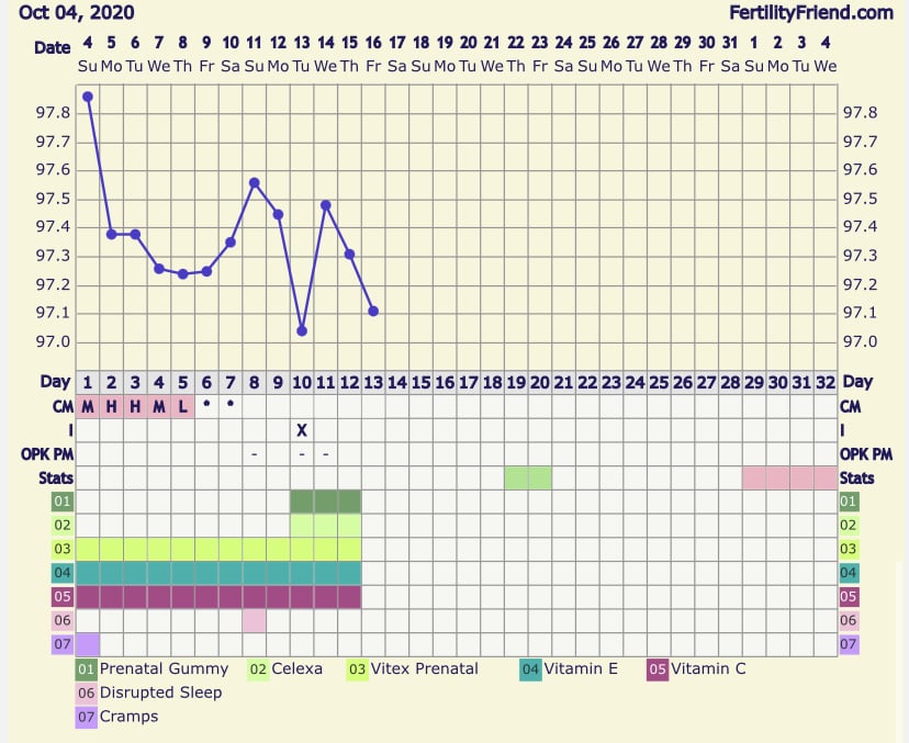 WAYDTGKU: Opks, temping until O is confirmed then stopping as it gives me anxiety and I find the temping is actually causing me to wake up multiple times in the AM panicking that I've missed the time to temp (which then makes my temps completely unreliable as I'm constantly waking every few hours!!! Just not going very well).