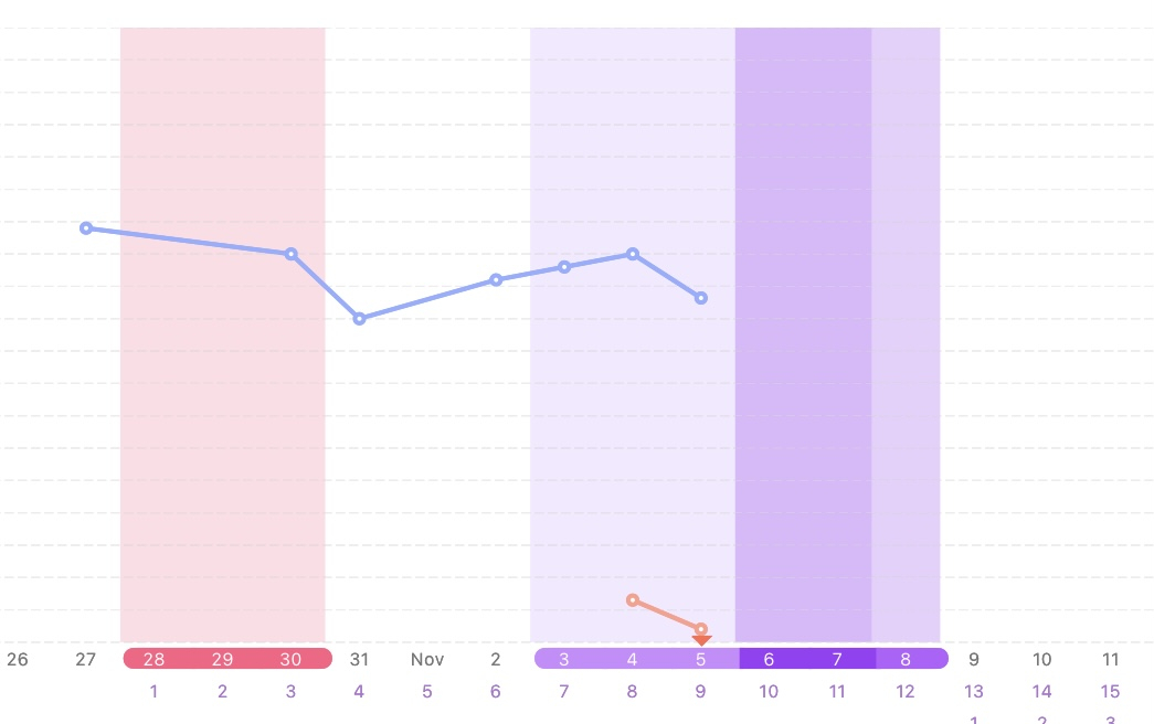 CS/Q: I was having O pain last night, and still a bit achy this morning, and my RHR dropped which usually happens after O. Buuuut, since I'm not tracking bbt, and my Oura ring only shows bbt delta from baseline, I'm gonna stick around here today, and then move on to TWW tomorrow.