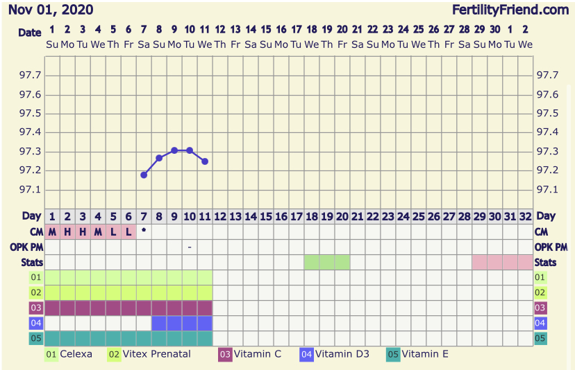 CS/Q: Nothing to see. My temp's a little elevated but not as much as it is after I ovulate so I'm thinking it's just heavy blankets and warm temperatures.
