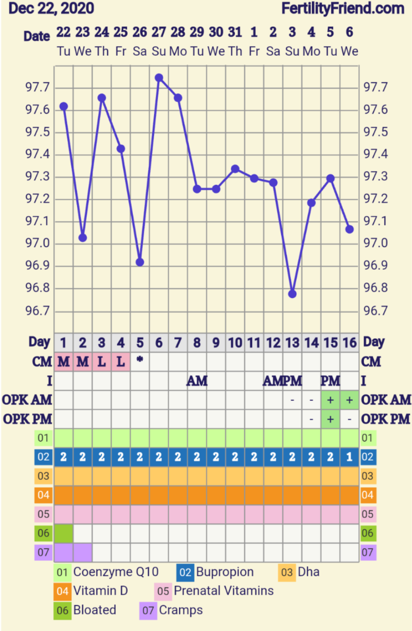 WAYDTGKU: bbt, opks, cm ,cinnamon (someone asked about the cinnamon, I don't remember who but my OB/GYN wants me to get lots of cinnamon because it can help regulate ovulation with my PCOS).