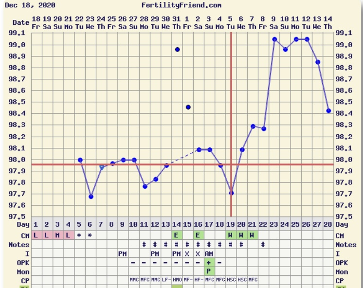 CS/Q: My temp went down some today, but not below what I anticipate will be the cover line. It makes me somewhat less confident that I actually ovulated. I will wait and see what it is tomorrow, but I really hope it is back up.