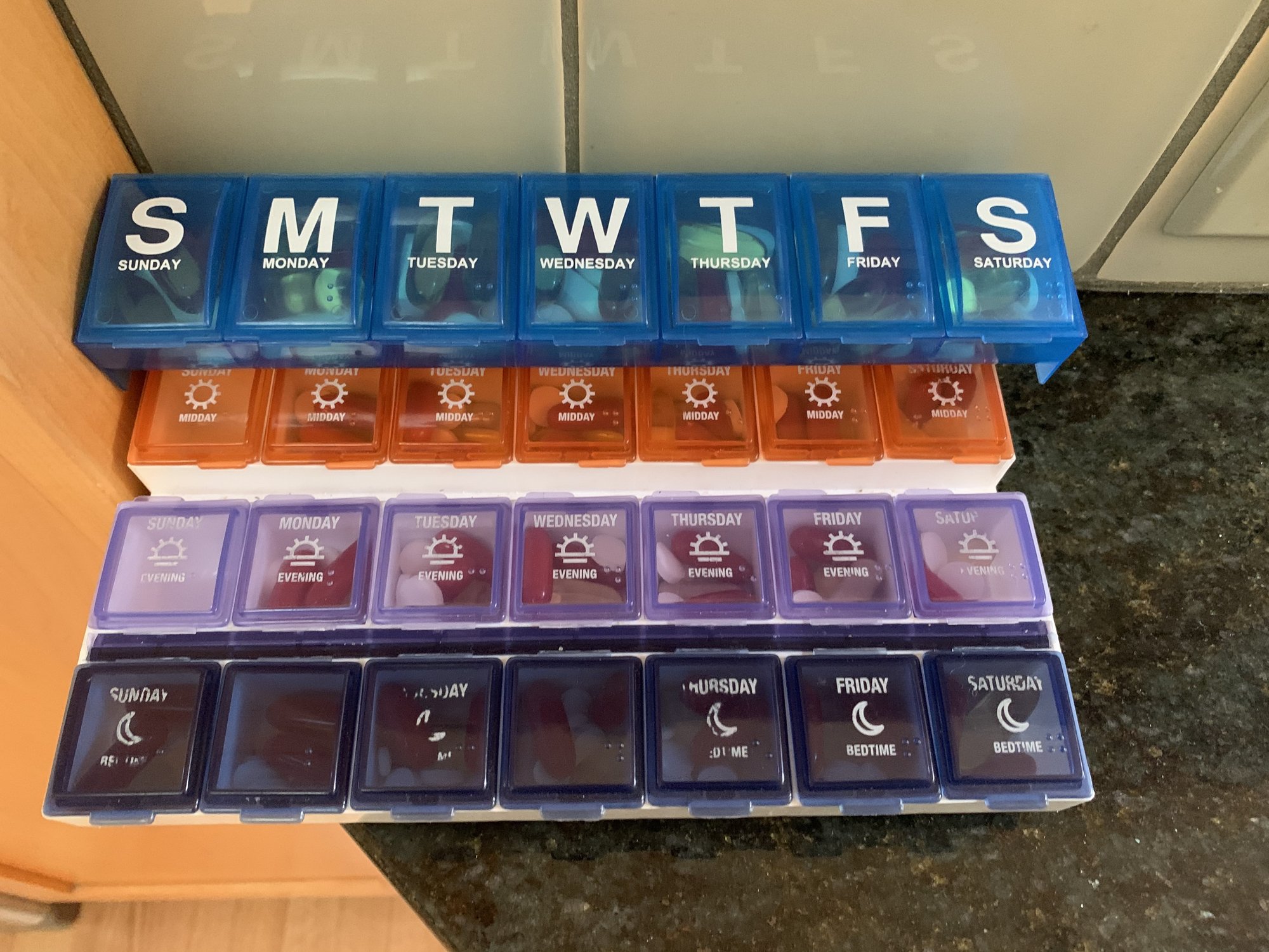 @quiltandknit Oh yes, the old lady pill box is a must once taking all these supps!😉 The frugal lil old lady in me found a hack: I put my daily pills for the day into a mini Altoids tin. This way I have it in my purse always and forget to take them less often.