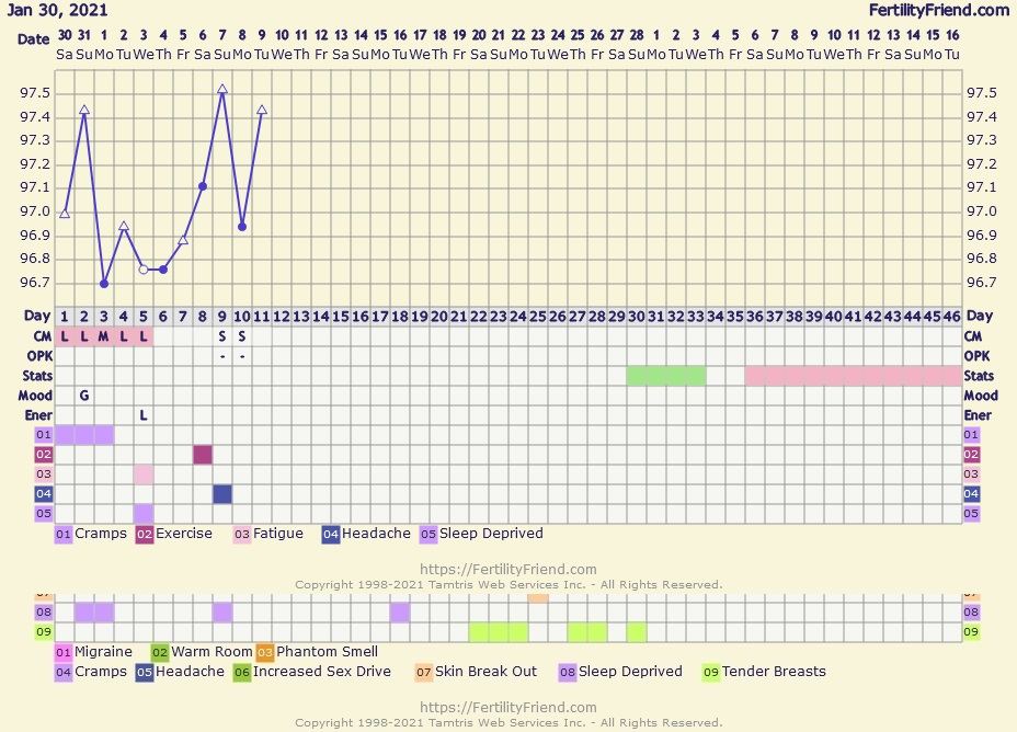 R/R: Welp, started spotting last night and and AF arrived this morning. That gives me an 11 day LP now I guess..
