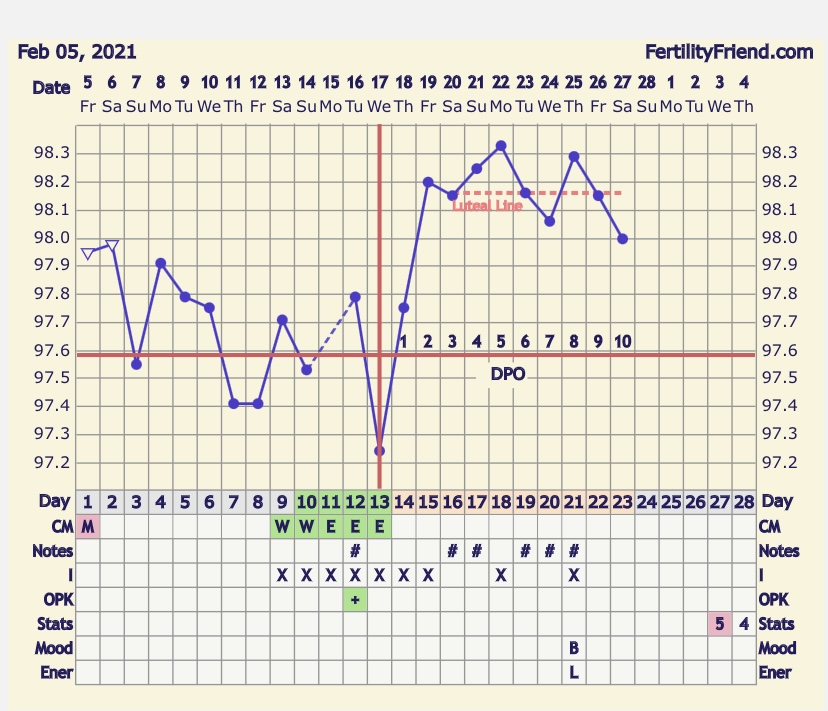 I’m a little bit worried. My temp didn’t dip, but has gone down today 😓. I’m 10 DPO, is it too early for temps to drop leading to AF? Expected period is 3/3, 4 days away.