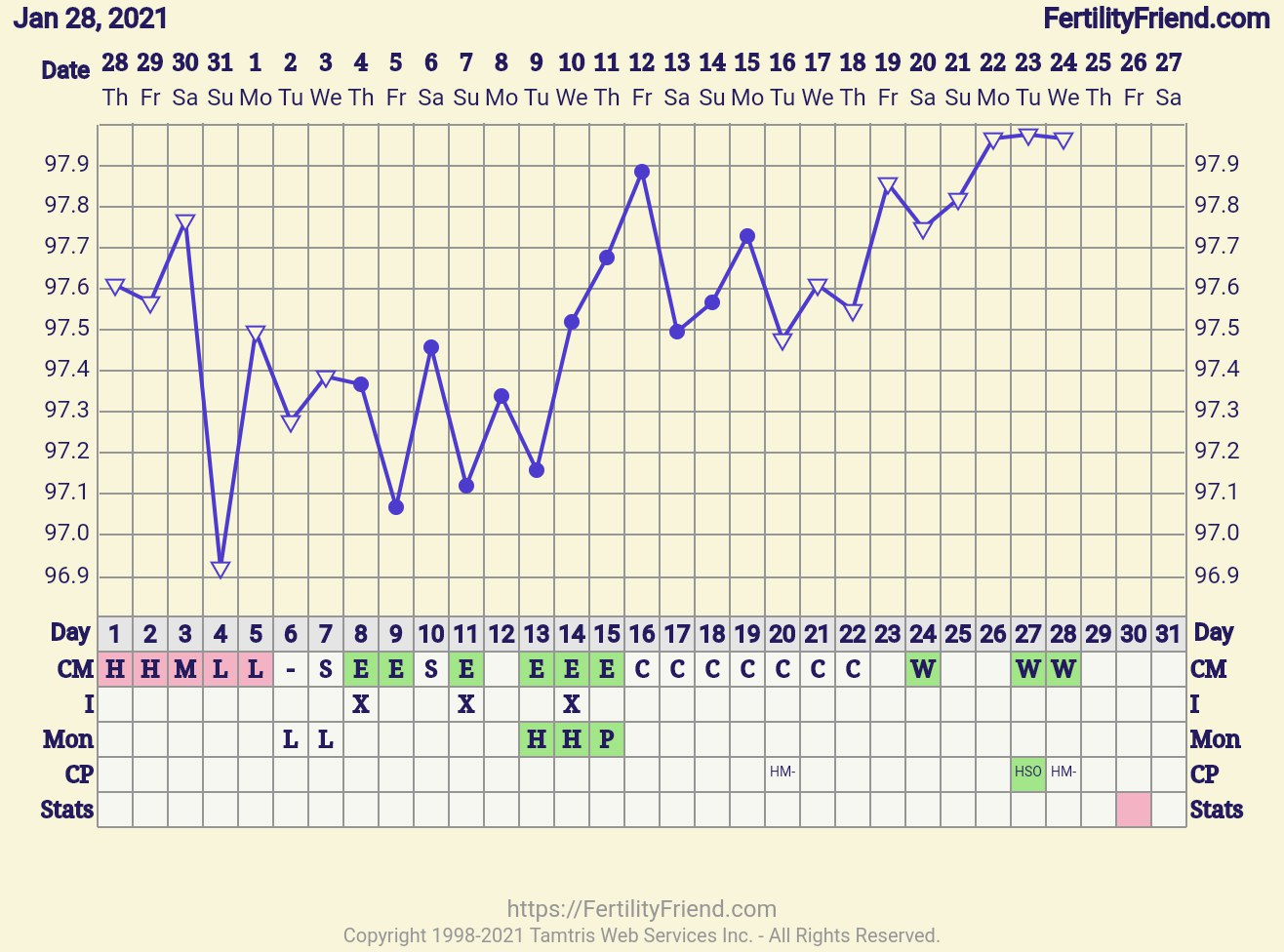 @inthewoods23 for cm it’s the most fertile cm you get at any point in the day like @pajamstagrams said. For cp it should be at the same time every day. I believe tcoyf suggests early afternoon bc early in the morning and late in the day change your position as well.
