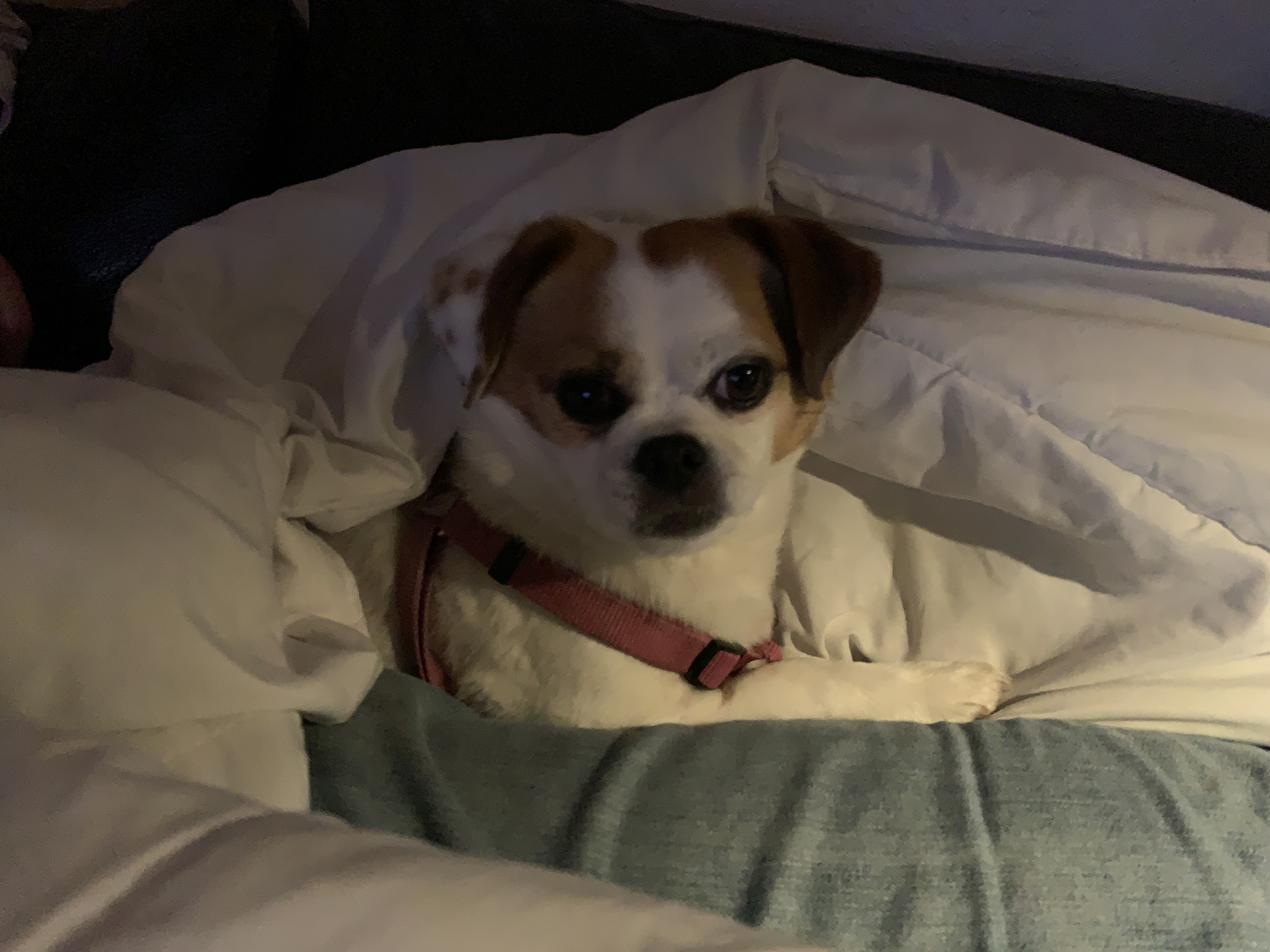 R/R: I (finally) got my colonoscopy/endoscopy biopsy results back and all is good: no Celiac, no IBS, no nothing. But I definitely have Non-Celiac Gluten Sensitivity so still no gluten for me. I was feeling really “off” yesterday to the point where I did an at home Covid test and also will go get one at a drive through center this morning. Feeling better this morning but want to be as cautious as possible. Finally, this dog we’re boarding right now is such a loveable creature! She’s such a weird looking one (lazy eye, snaggletooth) but adorable! I’m really in love. MH is generally apprehensive about my Rover idea and has been keeping an arm’s length from the dog (though he walked here twice yesterday because I wasn’t feeling well). But this dog is not to be deterred by his lack of attention! Last night we were on the couching watching TV and she burrowed herself in blankets right next to him. Didn’t want me! She wanted him! Bahahahaha. It was legit the cutest thing. Photo in spoiler.