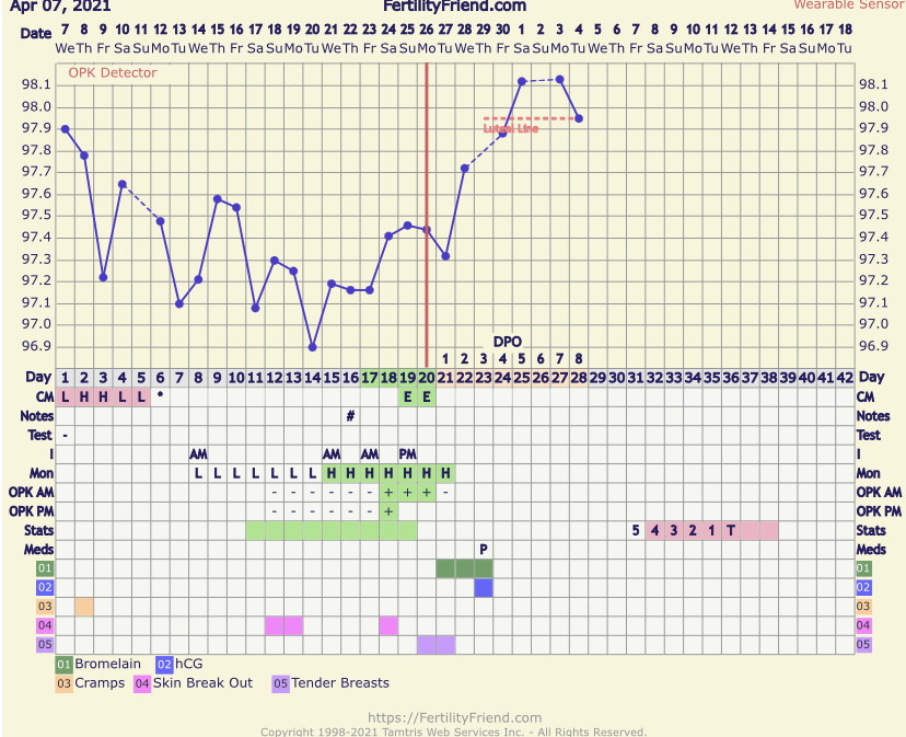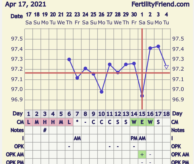CS/Q: temp drop doing the temp drop thing and adjusting my temps. But they’re still staying high because of hcg + progesterone supplementation.