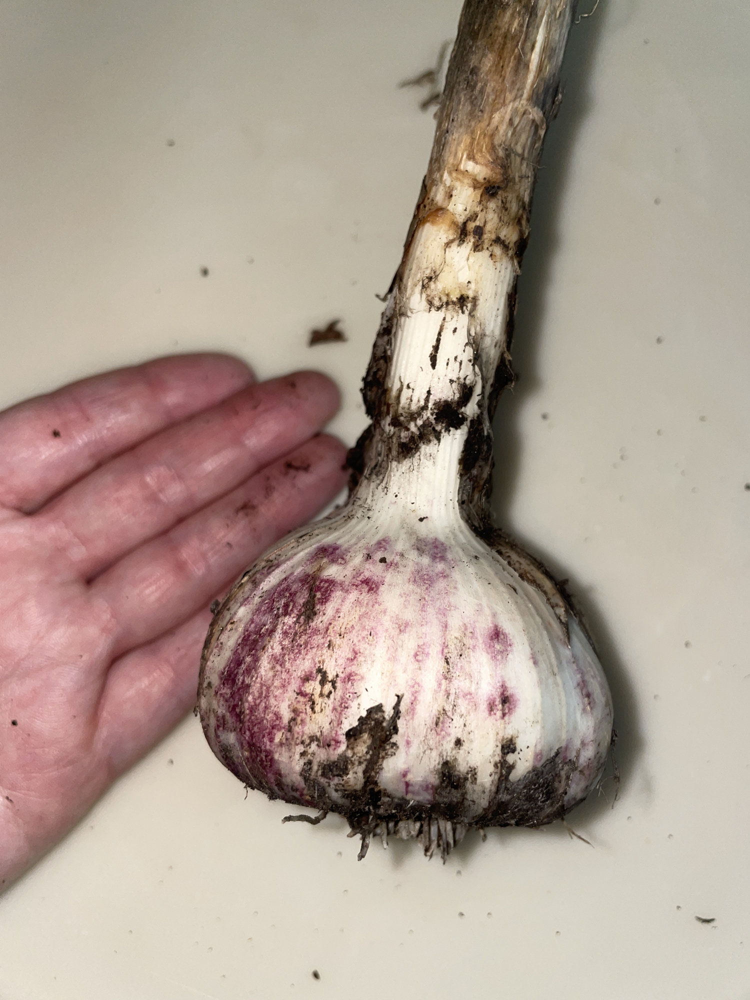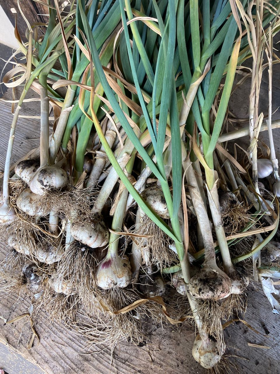 @laura-kay the variety is called "silver rose" (https://www.siskiyouseeds.com/collections/garlic/products/garlic-silver-rose) and is ostensibly a softneck variety. I may have harvested mine too early but the bulbs are huge and many of the plants had begun to flop over. most had between 3-5 leaf sets still greenish but about half the leaves were brown. i hope i didn't harvest too early! next season i would like to experiment with a few different kinds of garlic, including a hardneck variety or two.
