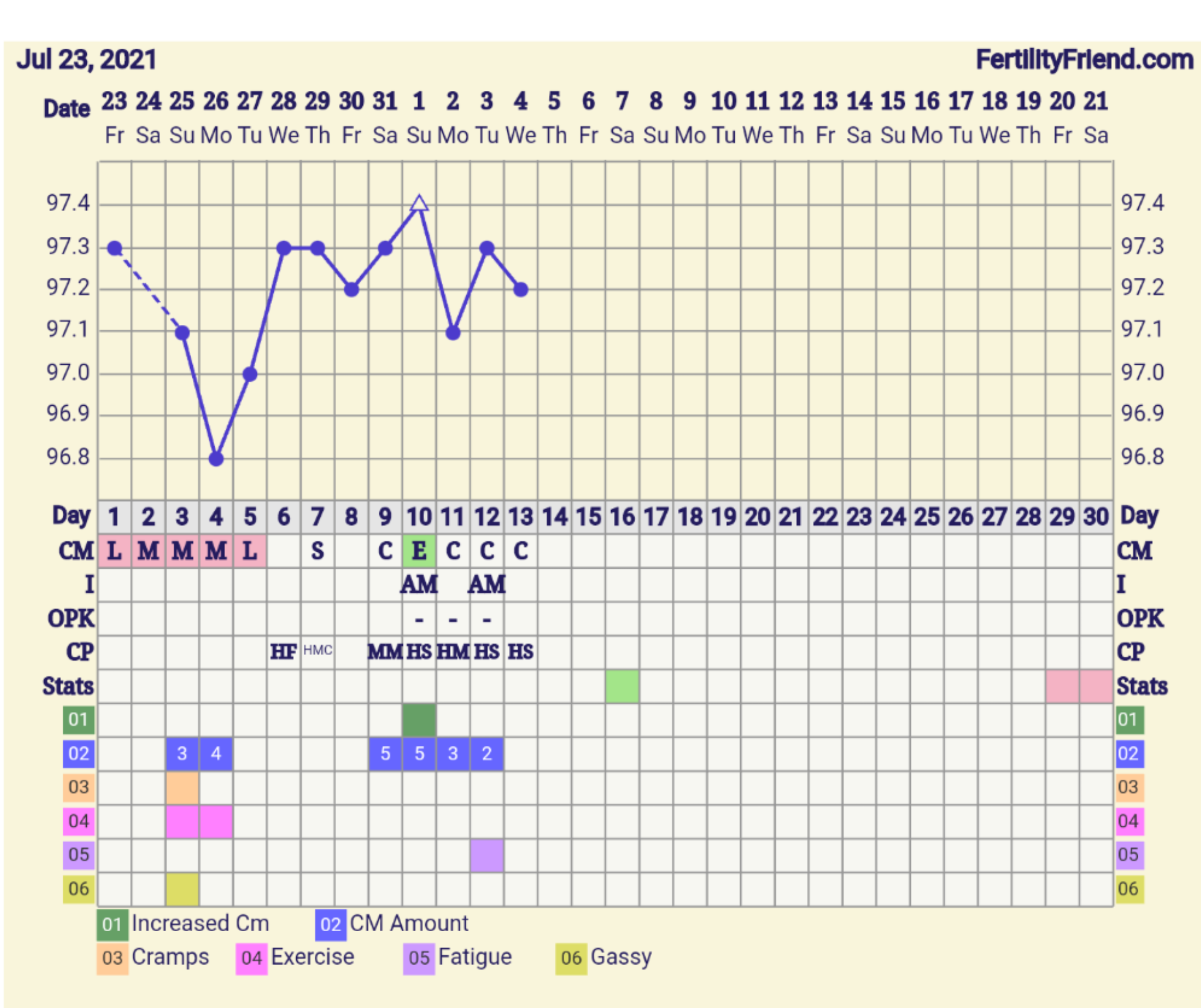 CS/Q: Having what I think is ovulation pain tonight (unless I pulled something on one side of my abs while exercising? It’s possible), so I’m curious to see what my temps the next few days will do. Never had this before so it’s a new one.